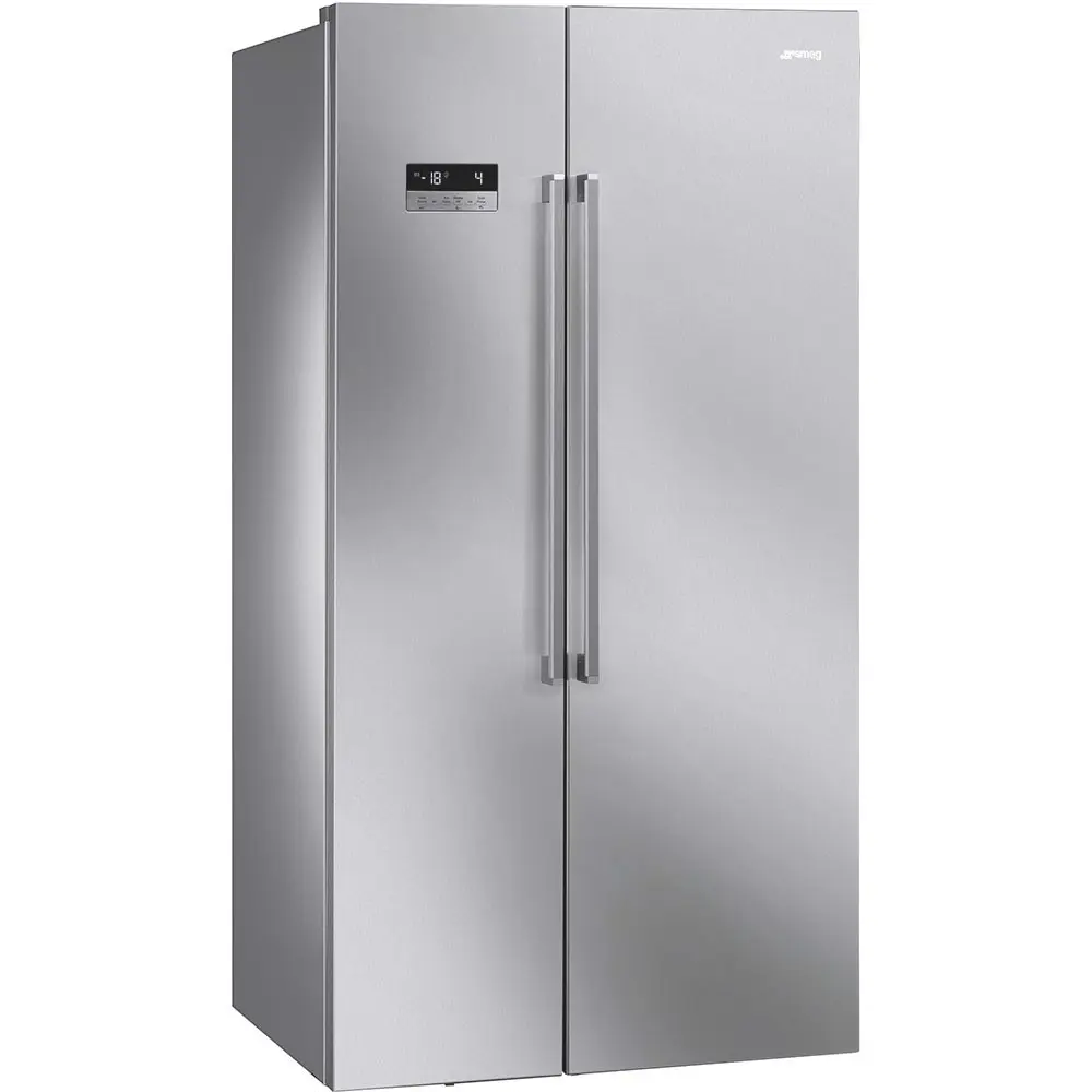 Smeg SBS63XDF. Posizionamento dell'apparecchio: Libera installazione, Colore del prodotto: Acciaio inossidabile, Product design: Porta americana. Capacità netta totale: 580 L, Classe climatica: SN-ST, Classe emissione rumore: C. Capacità netta frigorifero: 368 L. Capacità netta congelatore: 212 L, Capacità di congelamento: 13 kg/24h, Autonomia senza energia elettrica: 9 h. Lunghezza cavo: 2,15 m