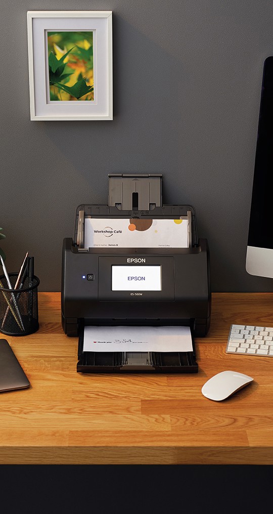 Esegui la scansione direttamente dal touch-screen dello scanner e crea preimpostazioni e layout personalizzabili senza bisogno di un computer. Puoi anche eseguire la scansione e la condivisione tramite il tuo PC o Mac con il software Epson ScanSmart o utilizzare il tuo telefono o tablet con l’app Epson Smart Panel.