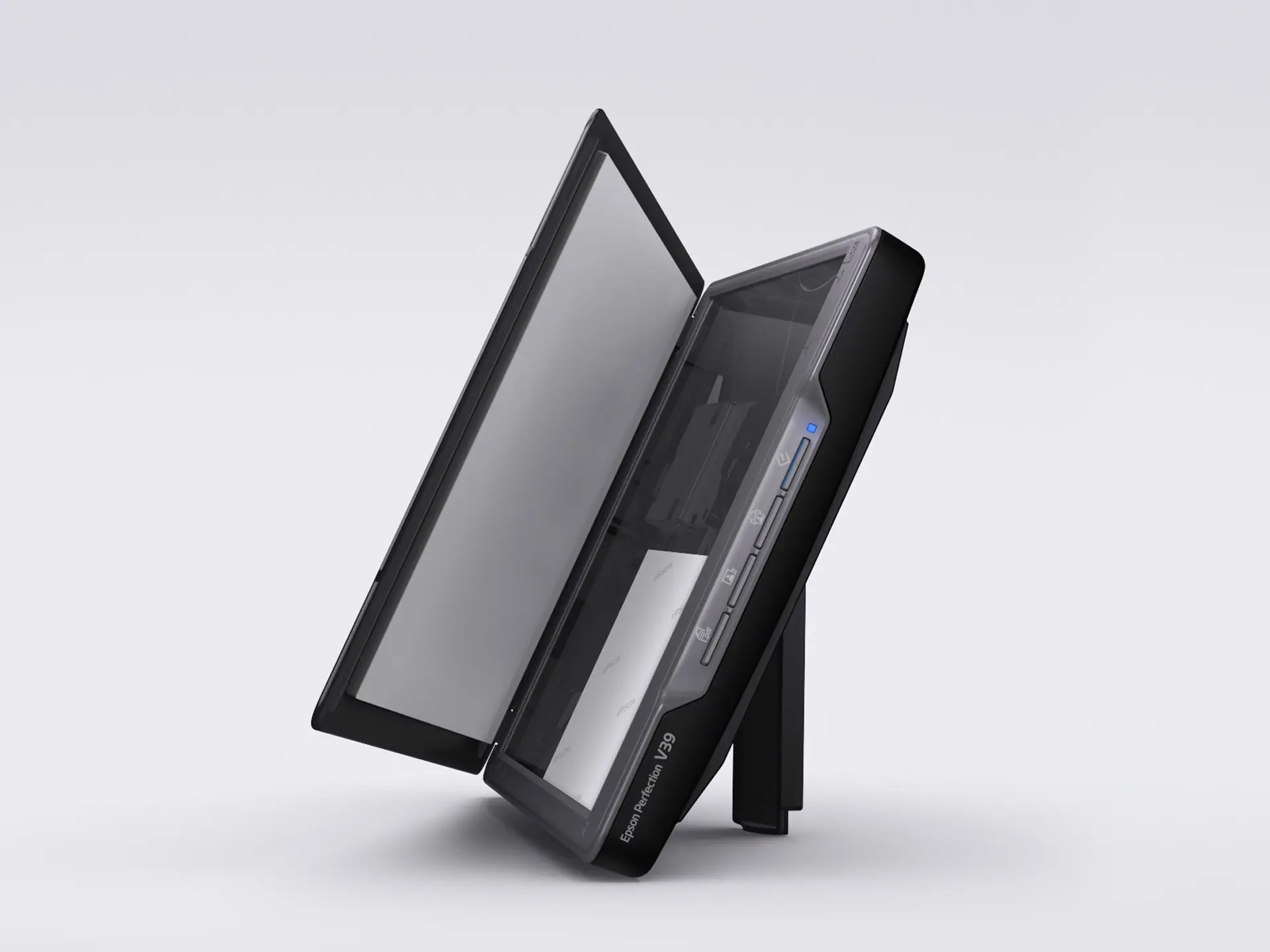L'alimentazione e la connettività di Perfection V39 sono gestite mediante un singolo cavo microUSB, per una postazione di lavoro sempre ordinata. Lo scanner è anche provvisto di un supporto integrato che assicura la massima flessibilità di scansione in base allo spazio disponibile.