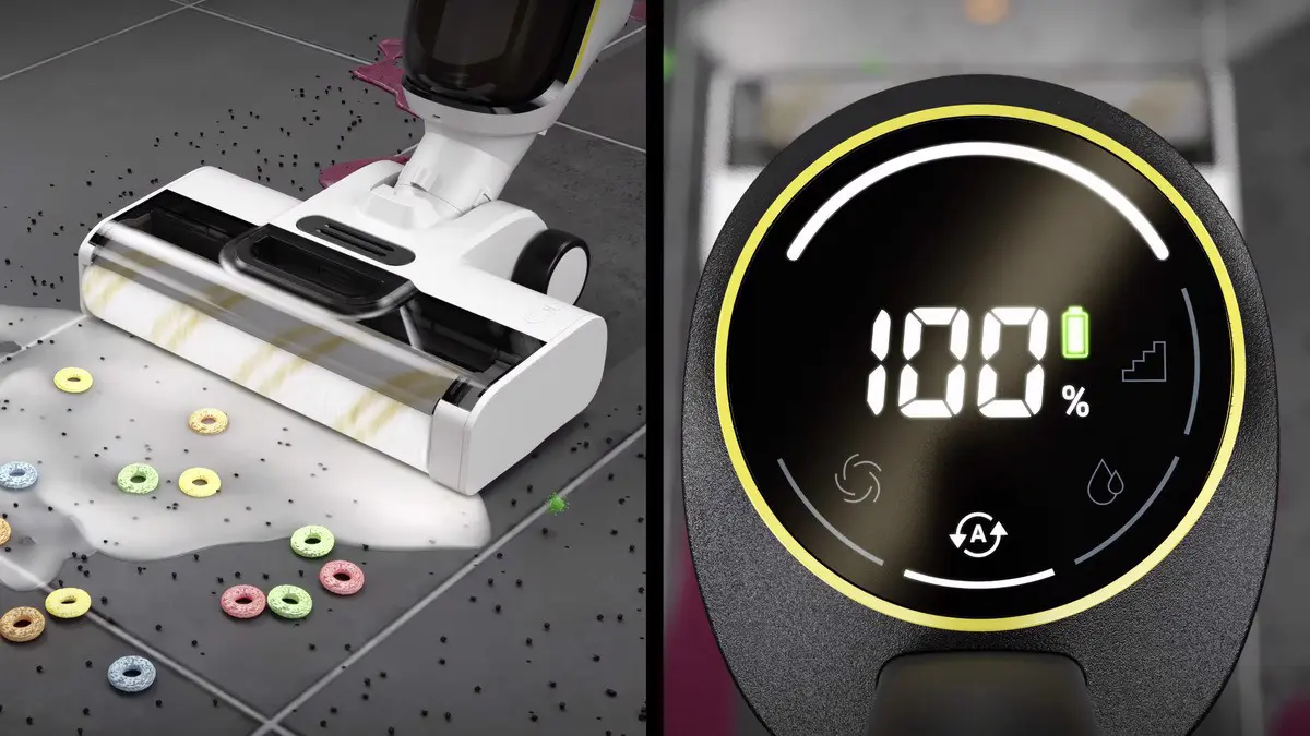 Xtra!Clean 3 in 1: aspira, lava, asciuga: la scopa aspirapolvere intelligente FCV 4 con autonomia della batteria di 45 minuti e sensore di sporco Dynamic!Control, anche sui tappeti. Wet & Dry