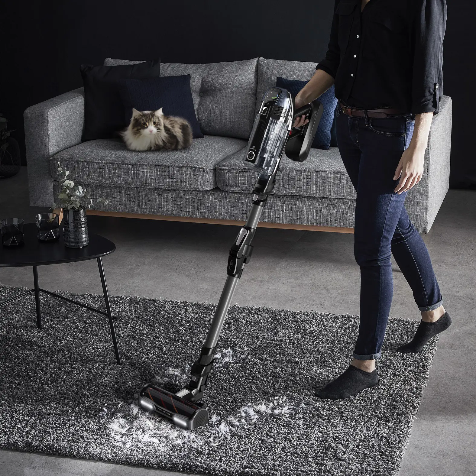 | Contenuto della confezione | : Cordless vacuum cleaner, charging station, two brush heads, filter, crevice tool, upholstery tool, turbo brush for pets and a charger |