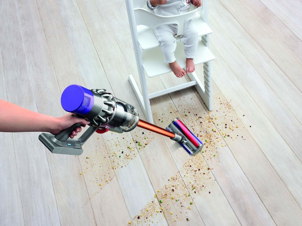 La spazzola motorizzata cattura peli e sporco sul pavimento, anche negli spazi più stretti.