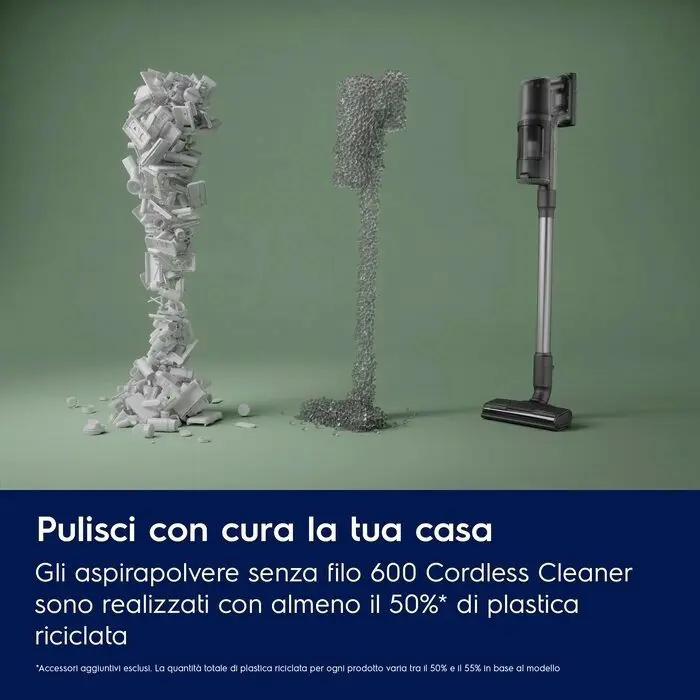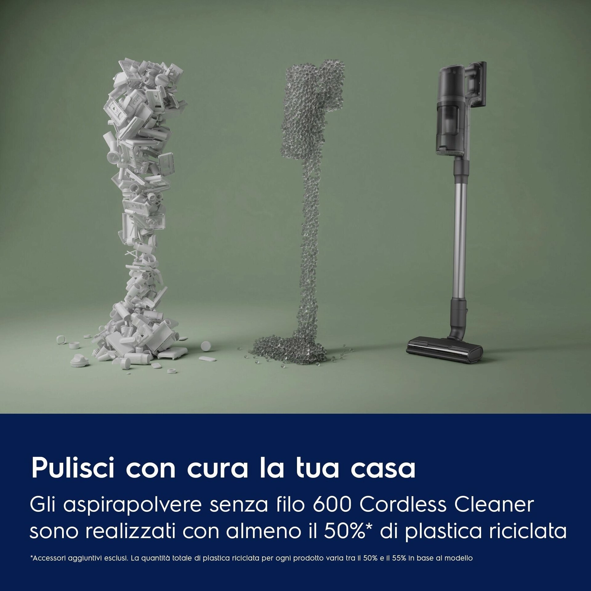Electrolux EP61CB21OG Scopa senza filo Clean 600 50 min di autonomia, Aspirapolvere a bastone 2 in 1, Senza sacchetto, Verde, 0,6 L, Plastica riciclata, Secco