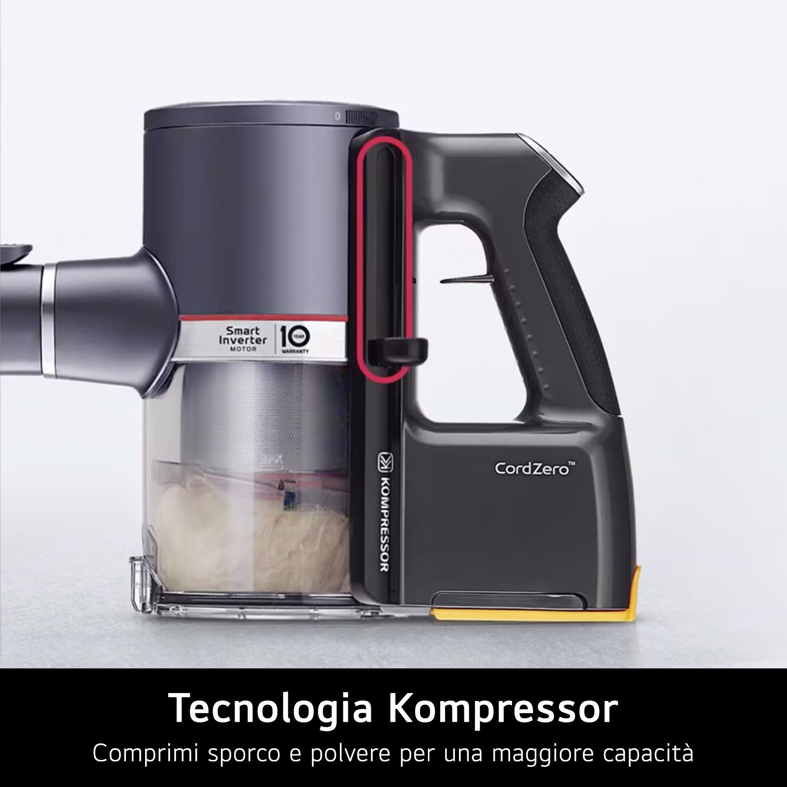 LG CordZero A9K Lite, Aspirapolvere Kompressor 220W, 60 min, 1 spazzola + 2 accessori, Filtro 5 strati, Wi-Fi, Beige
