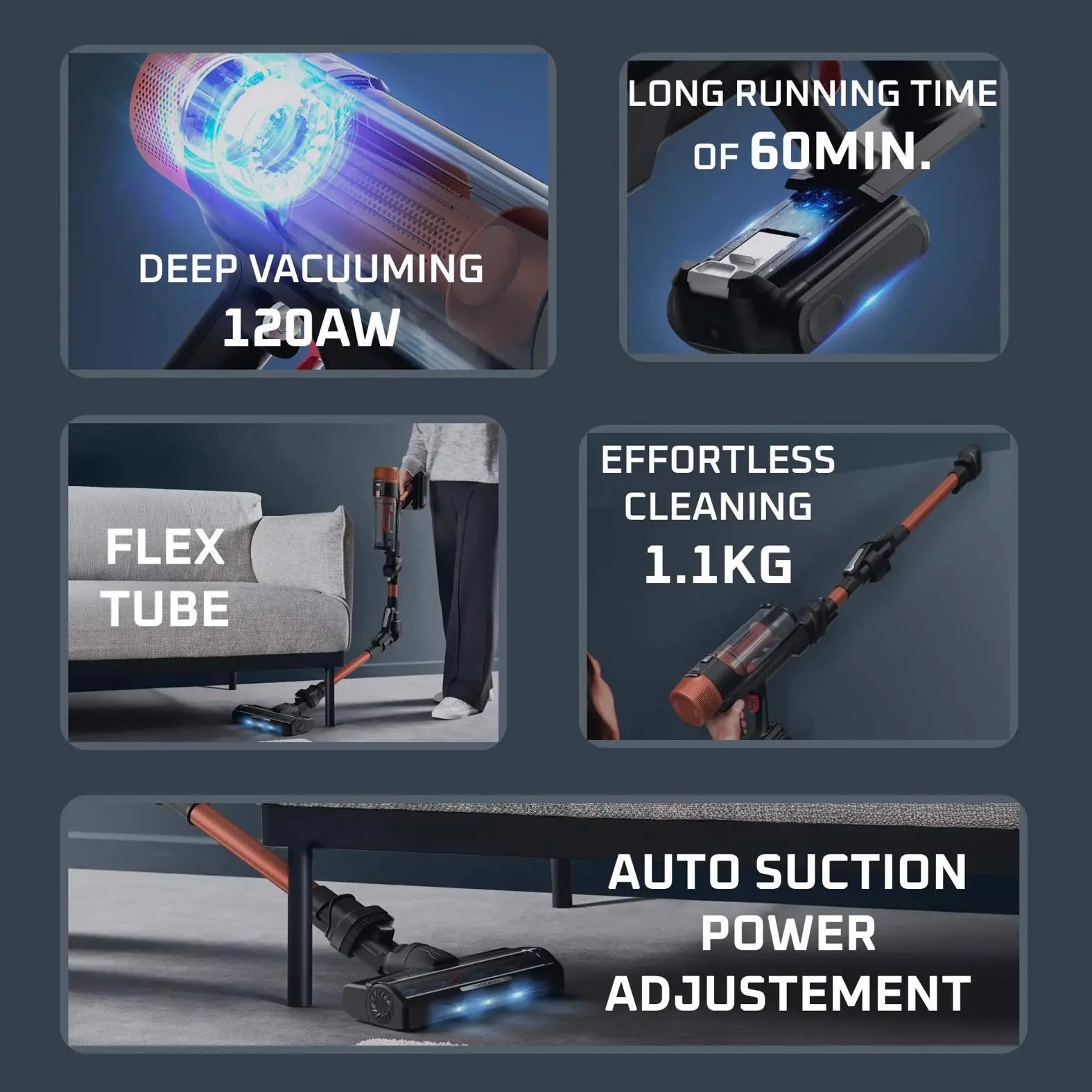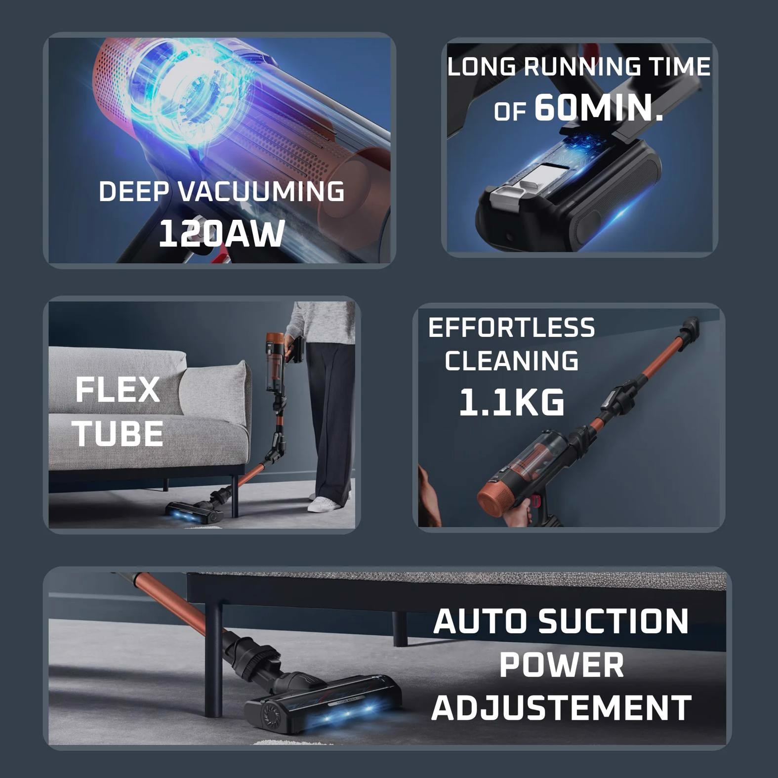 Passa a un nuovo livello di pulizia con X-Force Flex 10.80, l'aspirapolvere senza filo ultraleggera che combina una potente aspirazione, una lunga autonomia e funzioni intelligenti. Con una potenza di aspirazione ottimizzata fino a 120 Air Watt*, X-Force Flex 10.80 offre tutta la potenza, l'intelligenza e la libertà di cui hai bisogno, per un'esperienza di pulizia impeccabile e ad alte prestazioni.