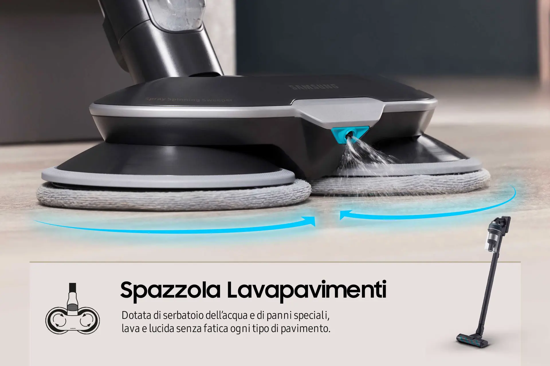 Samsung Aspirapolvere e Lavapavimenti senza filo Jet™ 85 premium 210W con Spazzola lavapavimenti inclusa VS20C852FTB Wet & Dry
