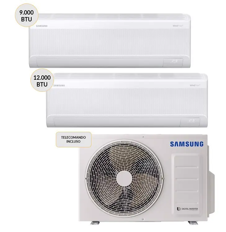 Samsung WindFree Condizionatore DUAL split 9000+12000btu AJ050TXJ2KGEU + AR60F09C1AWNEU + AR60F12C1AWNEU Climatizzatore Fisso