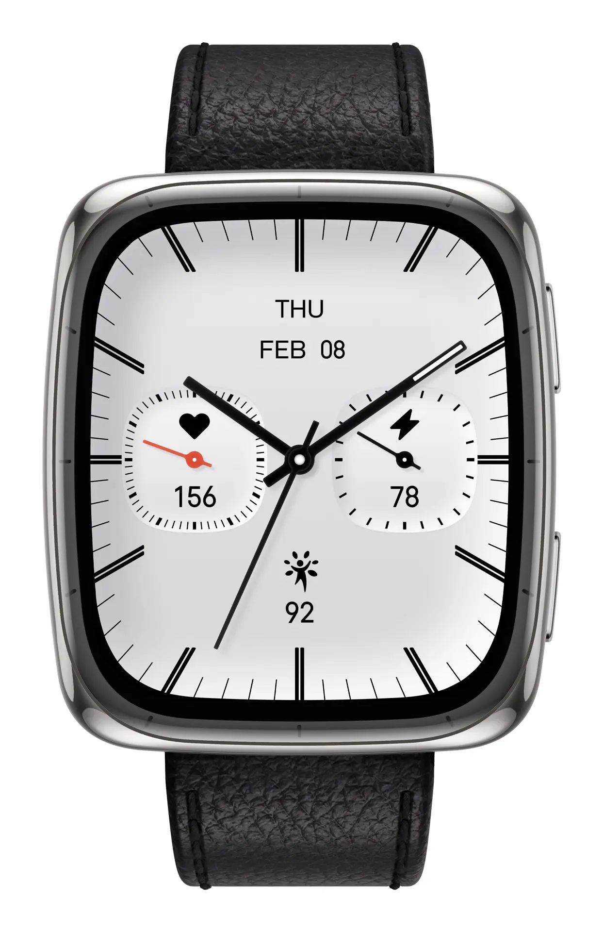 Amazfit Active 2. Dimensioni diagonale schermo: 4,45 cm (1.75"), Tecnologia display: AMOLED, Risoluzione del display: 390 x 450 Pixel, Touch screen. Capacità RAM: 64 MB, Memoria flash: 512 GB. Capacità della batteria: 260 mAh. Peso: 31,4 g. Materiale cinturino: Pelle, Silicone, Colore cinturino: Nero