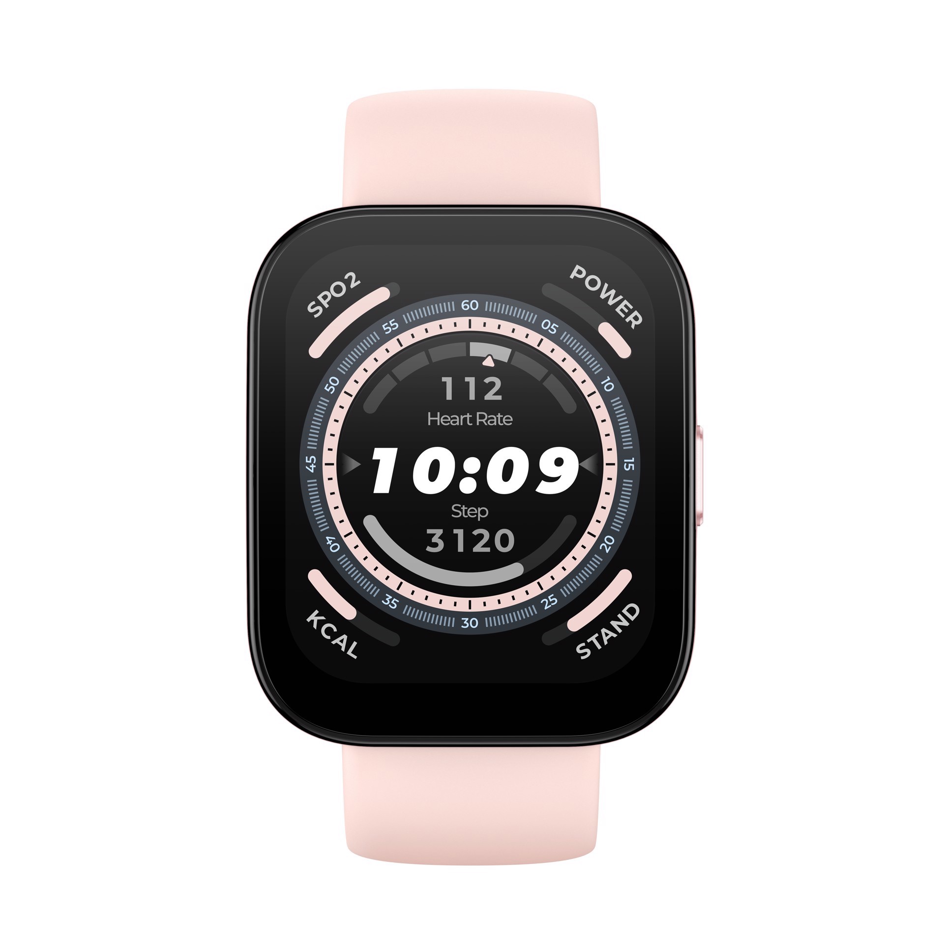 Amazfit Bip 5. Dimensioni diagonale schermo: 4,85 cm (1.91"), Tecnologia display: TFT, Risoluzione del display: 320 x 380 Pixel, Touch screen. GPS (satellitare). Capacità della batteria: 300 mAh. Peso: 26 g. Materiale cinturino: Silicone, Colore cinturino: Rosa. Sistema operativo incluso: Zepp OS