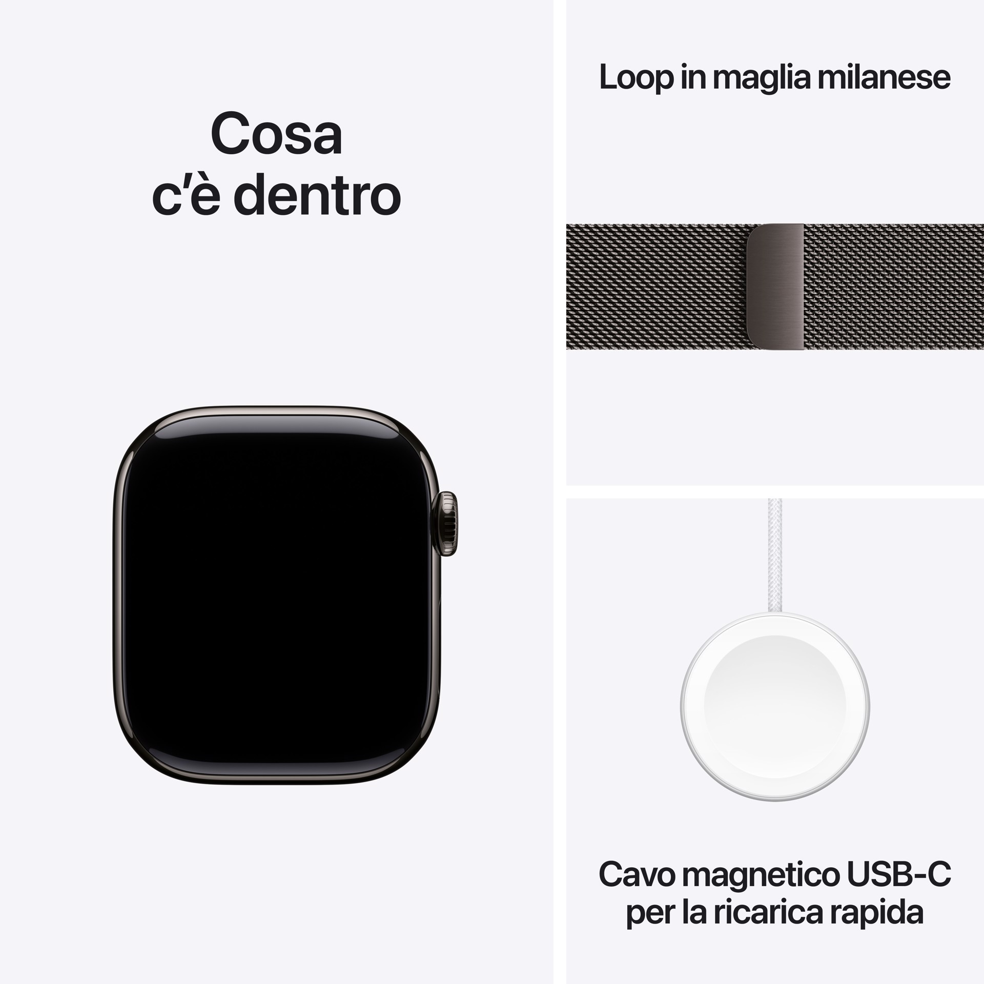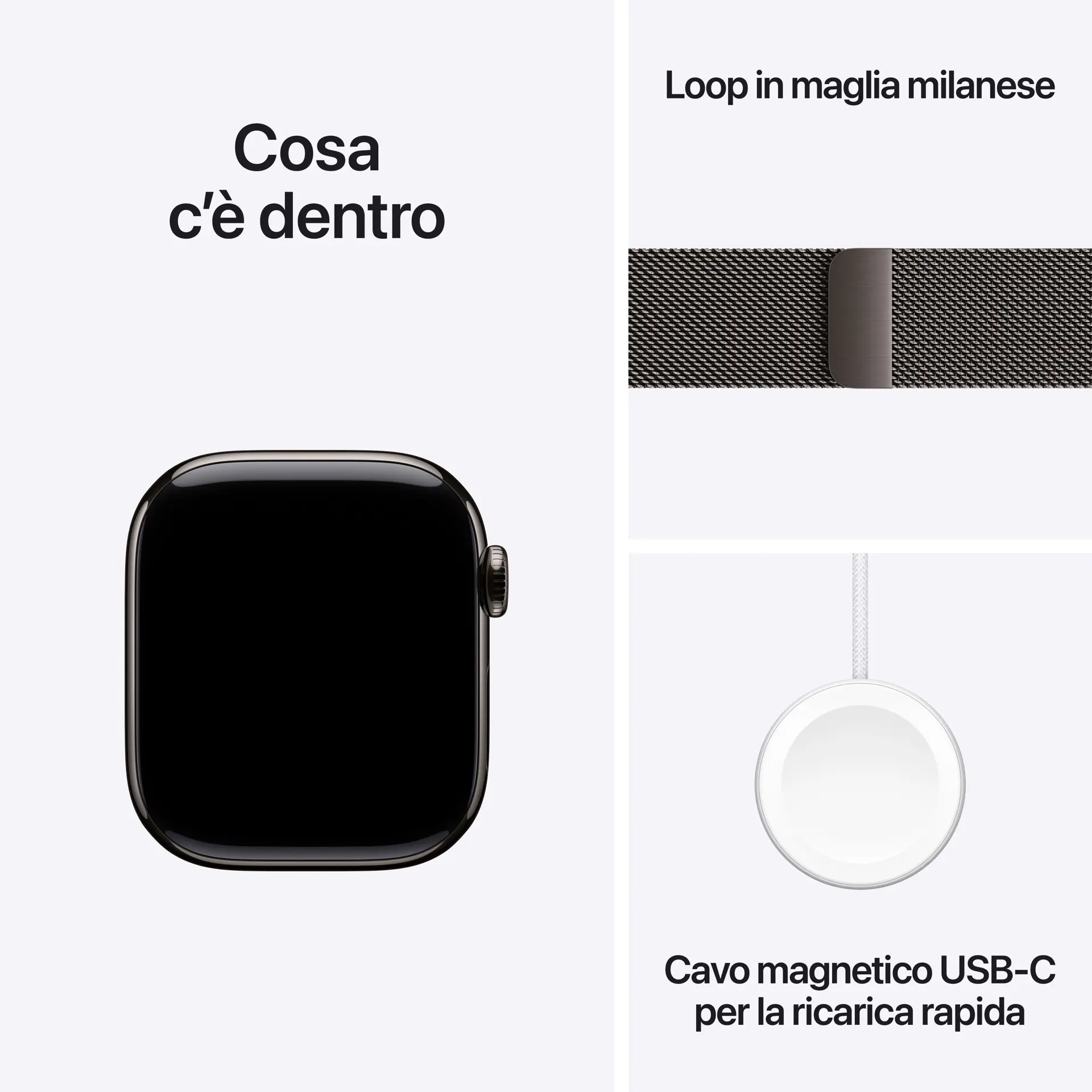 Apple Watch Series 11 GPS + Cellular 42mm Cassa Titanio Ardesia con Loop Milanese Ardesia, OLED, Touch screen, 64 GB, Wi-Fi, GPS (satellitare), 34,6 g