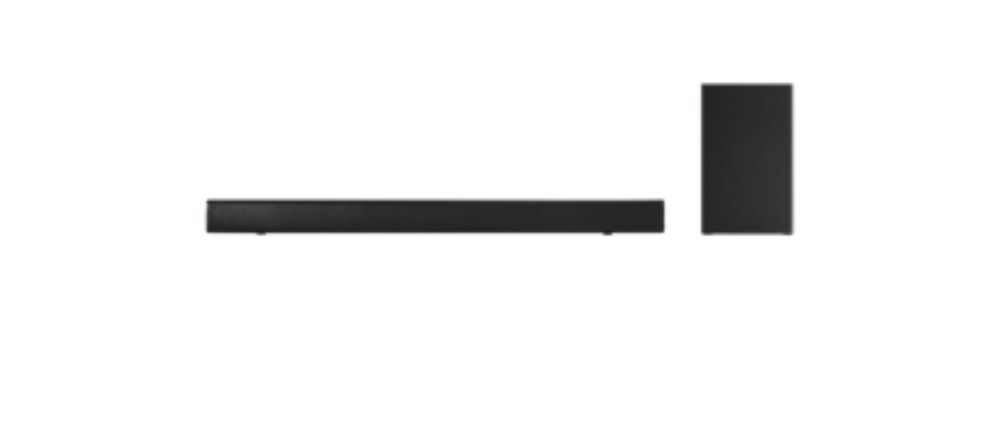 HTB150 è una soundbar lineare ed elegante dotata di un subwoofer wireless da 100 watt con bassi potenti e profondi. L'unità principale ha un corpo di colore nero lucido e un'elegante griglia in metallo che la rendono perfettamente abbinabile agli arredi più eleganti. Può essere facilmente connessa al TV tramite HDMI o al telefono tramite Bluetooth®.