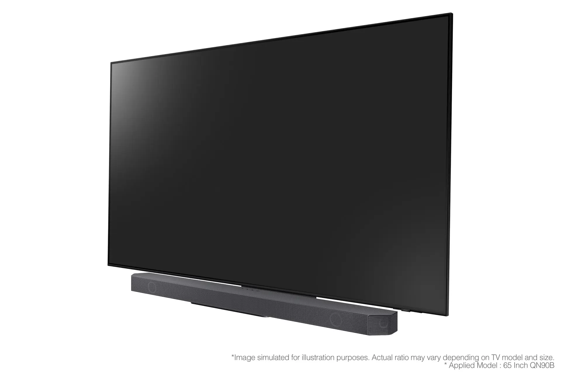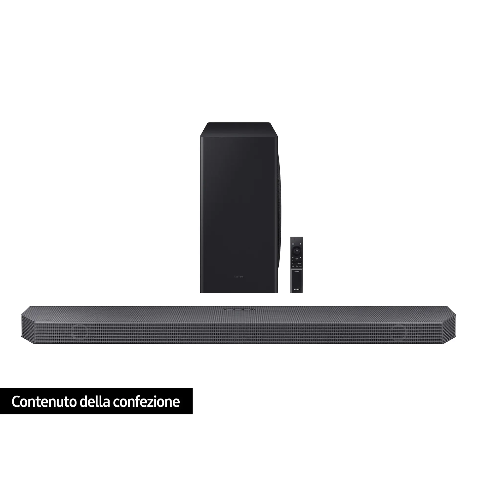 La soundbar si sincronizza con il tuo TV Samsung per dare vita a un’esperienza audio immersiva. Combina e amplifica i suoni attraverso gli altoparlanti frontali, laterali e up-firing della soundbar e del TV, regalandoti un nuovo livello di immersione acustica, per godere dei contenuti in modo mai sperimentato prima.