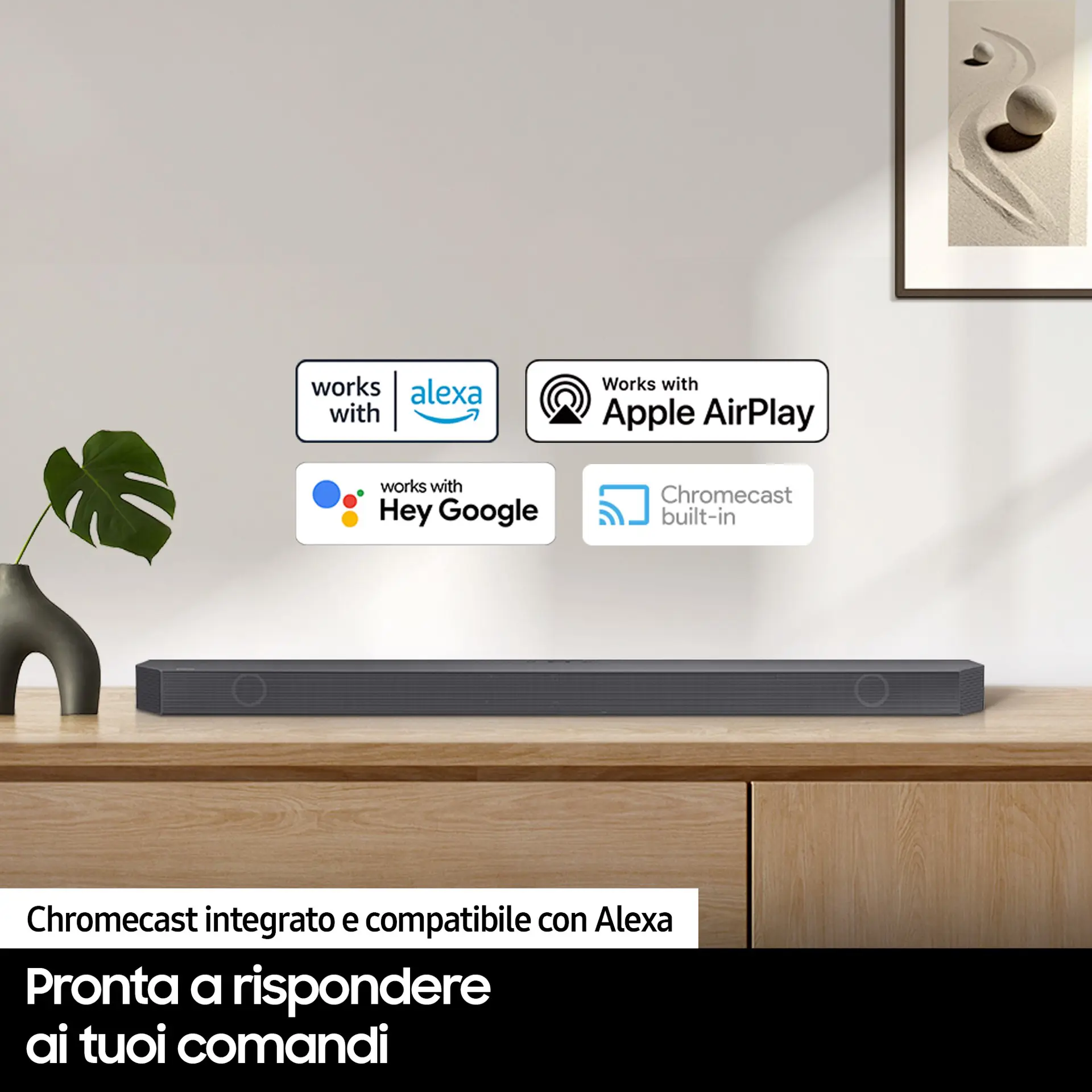 * La trasmissione wireless di Dolby Atmos tramite Wi-Fi funziona su (alcuni) TV Samsung 2022* Dolby Atmos e DTS:X si applicano a tutte le soundbar Serie Q 2022.* È necessario un contenuto da fonte Dolby Atmos e Virtual:X.