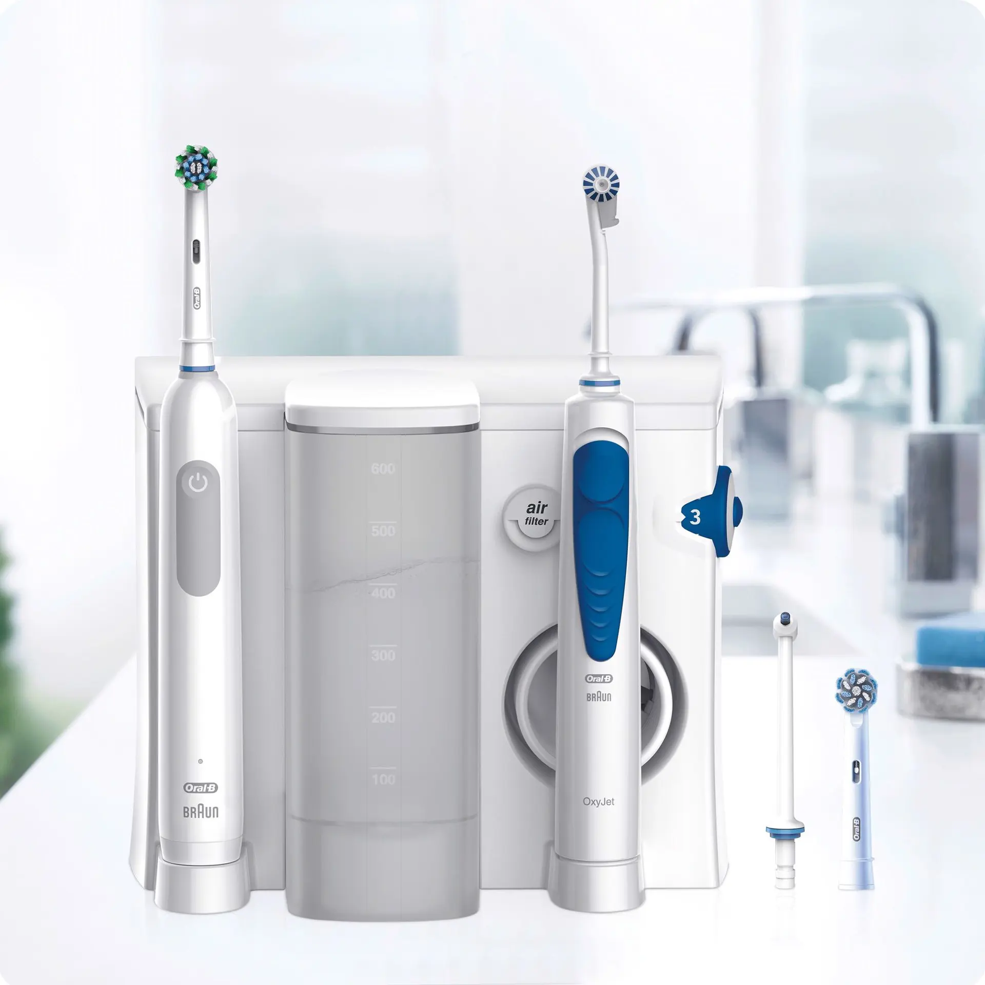 L’Idropulsore Oral-B utilizza la tecnologia delle microbollicine per bloccare lo sviluppo della placca batterica. Crea nell’acqua microbollicine di aria purificata riducendo notevolmente i problemi gengivali se utilizzato con un dentifricio specifico. Dotato di timer professionale, lo spazzolino elettrico Pro Series 1 ti aiuta a spazzolare i denti per il tempo consigliato dai dentisti, pari a 2 minuti. Grazie ad un avviso ogni 30 secondi, saprai sempre quando è il momento di passare all’area successiva. Spazzola i tuoi denti, l’esclusiva testina rotonda di Oral-B penserà al resto. Rimuove fino al 100% di placca in più rispetto ad uno spazzolino manuale tradizionale, per gengive più sane. Inoltre, rimuove le macchie superficiali, per un sorriso più bianco sin dal primo giorno. Oral-B Pro Series 1 con timer professionale è la scelta ideale per tutti coloro che desiderano passare ad uno spazzolino elettrico.