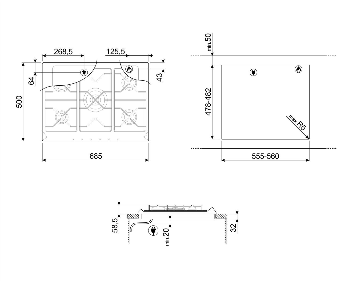 | Fonte di alimentazione del fornello/zona cottura 5 | Gas |