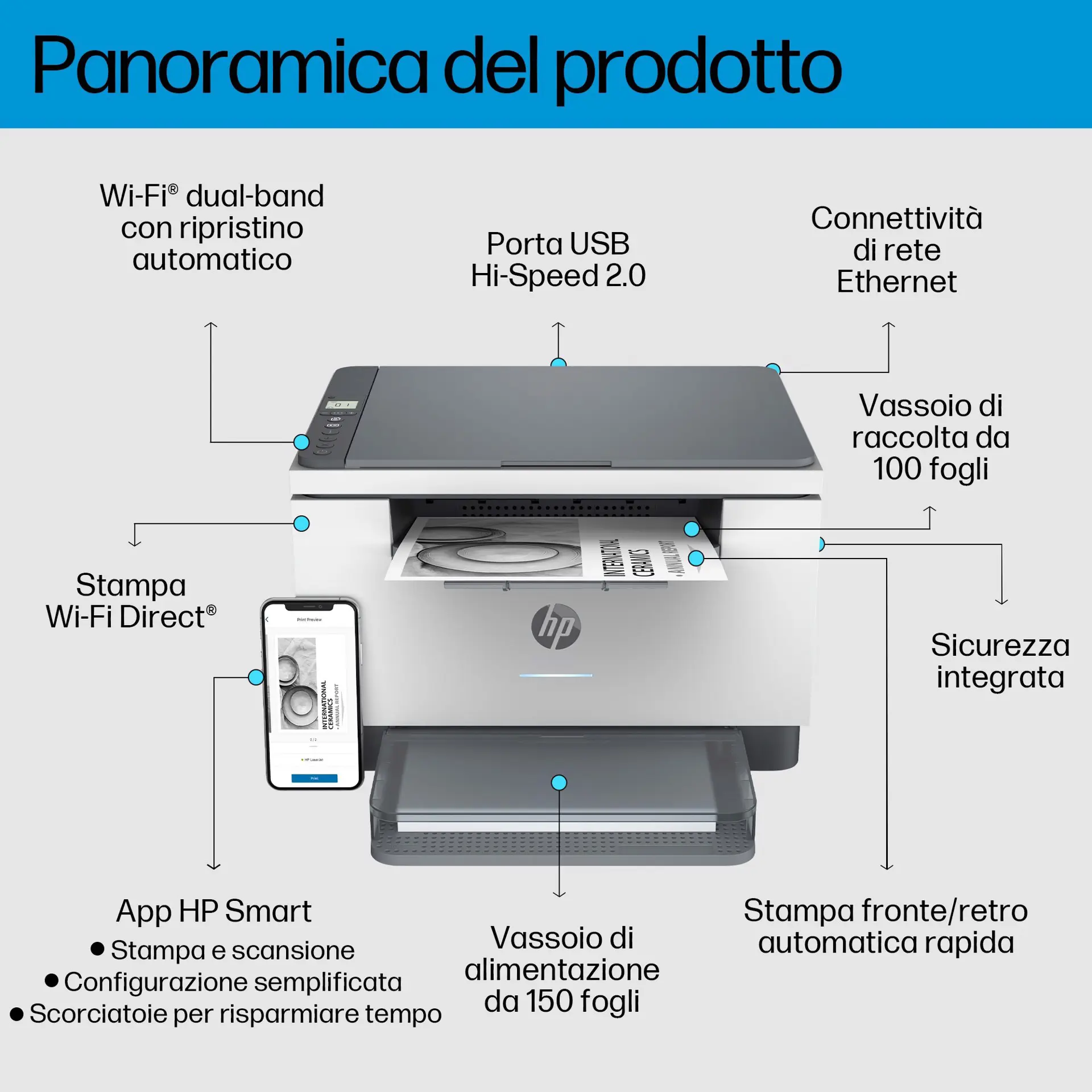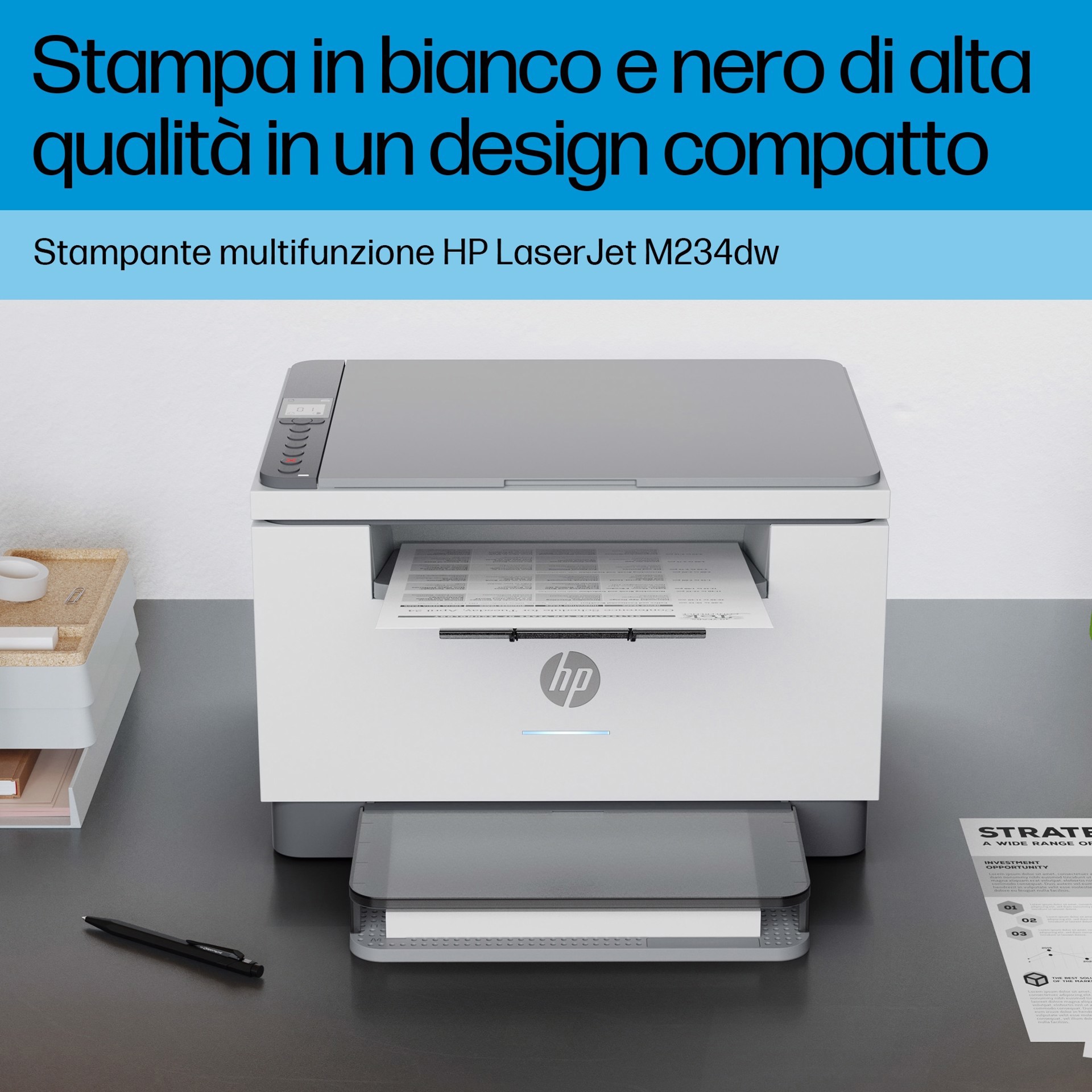 | Contenuto scatola | HP LaserJet MFP M234dw Printer; HP Black LaserJet Toner Cartridge (700 pages); Dust cover; Reference guide; Setup poster; Warranty guide and flyer in some countries; Power cord |