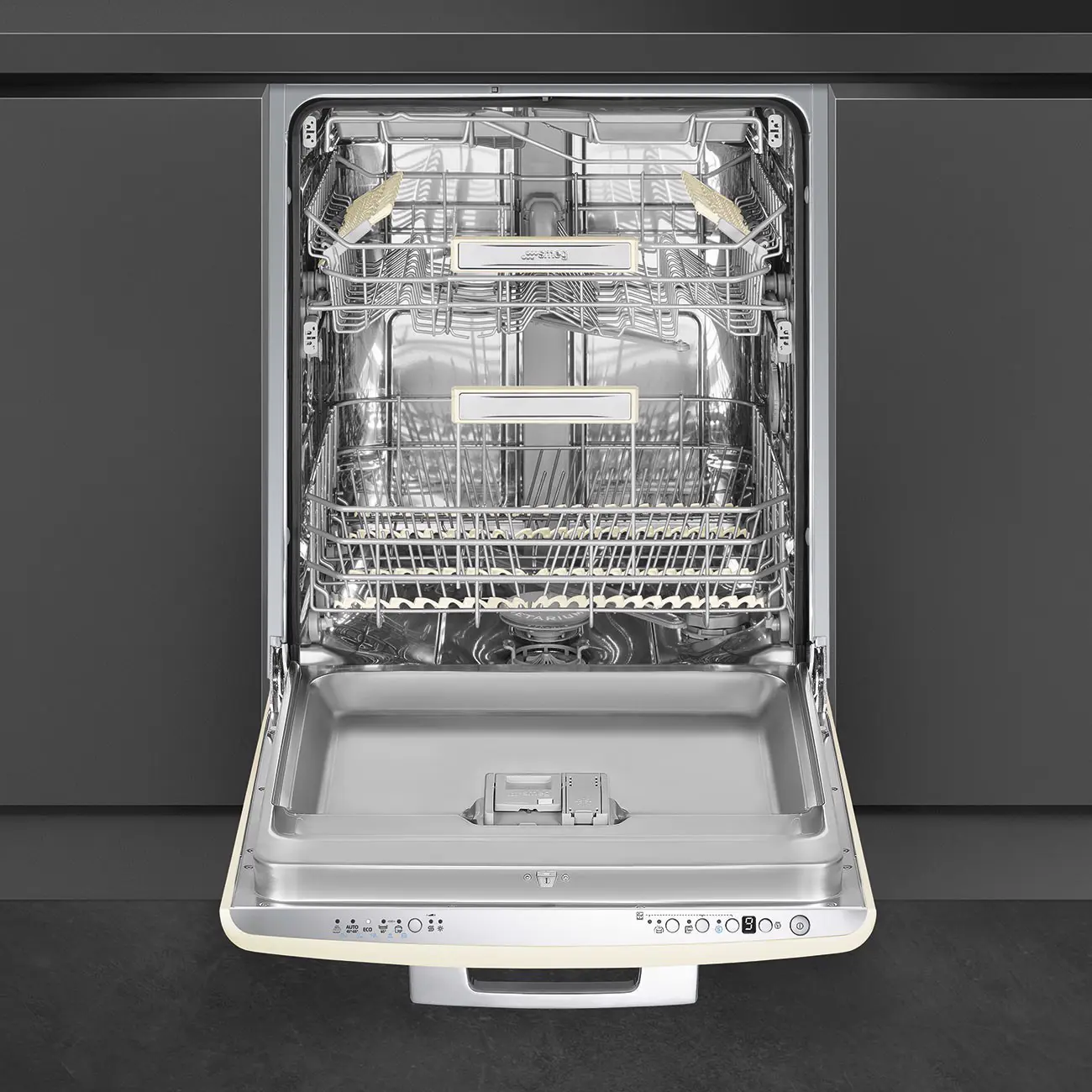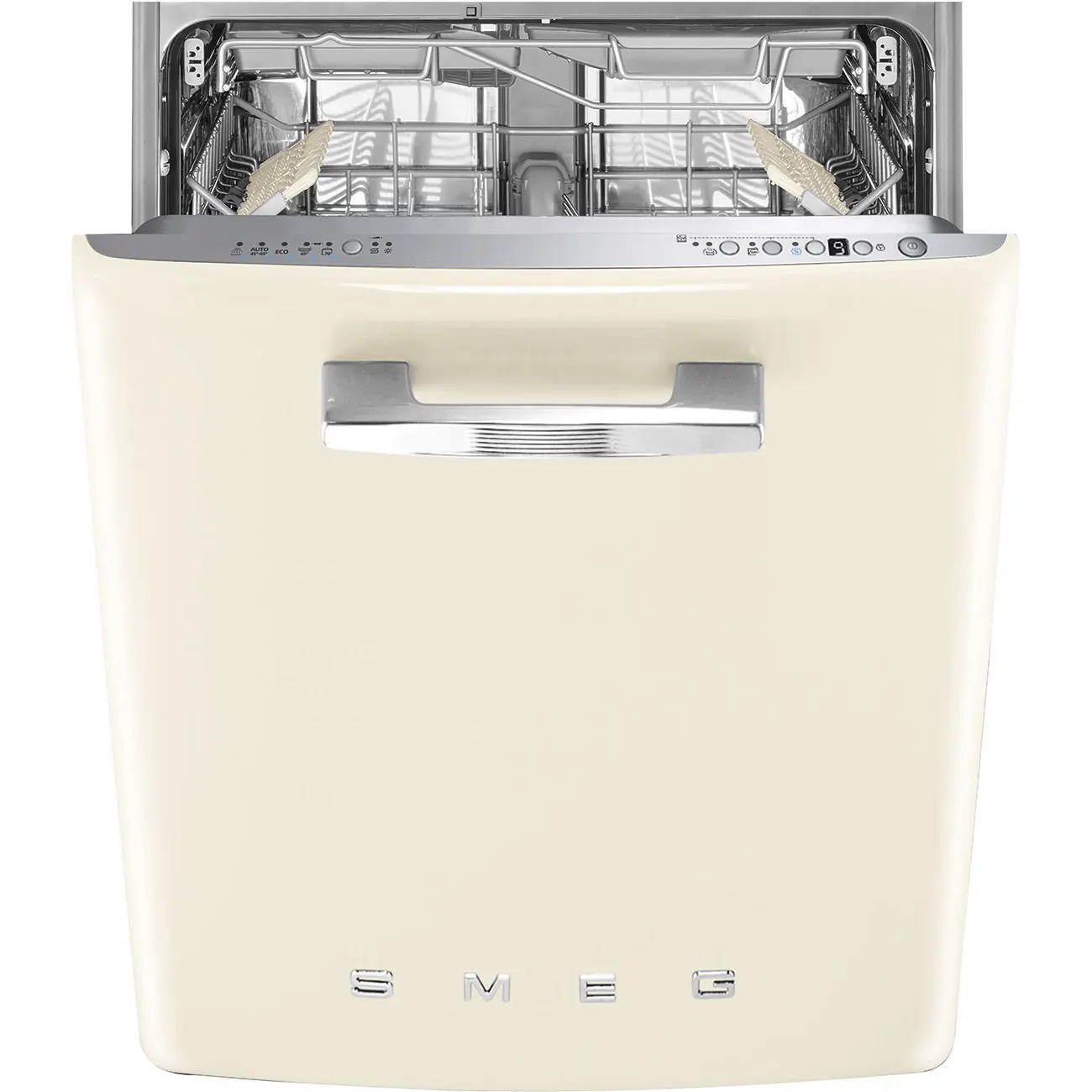 Smeg STFABCR3. Posizionamento dell'apparecchio: Sottopiano, Dimensione: Dimensione massima (60 cm), Colore della porta: Crema. Numero di coperti: 13 coperti, Classe emissione rumore: B, Emissione acustica: 44 dB. Regolazione piedini: 7 cm. Classe efficienza energetica: B, Consumo di acqua per ciclo: 9 L, Consumo energetico per 100 cicli: 63 kWh. Larghezza: 598 mm, Profondità: 584 mm, Altezza: 818 mm