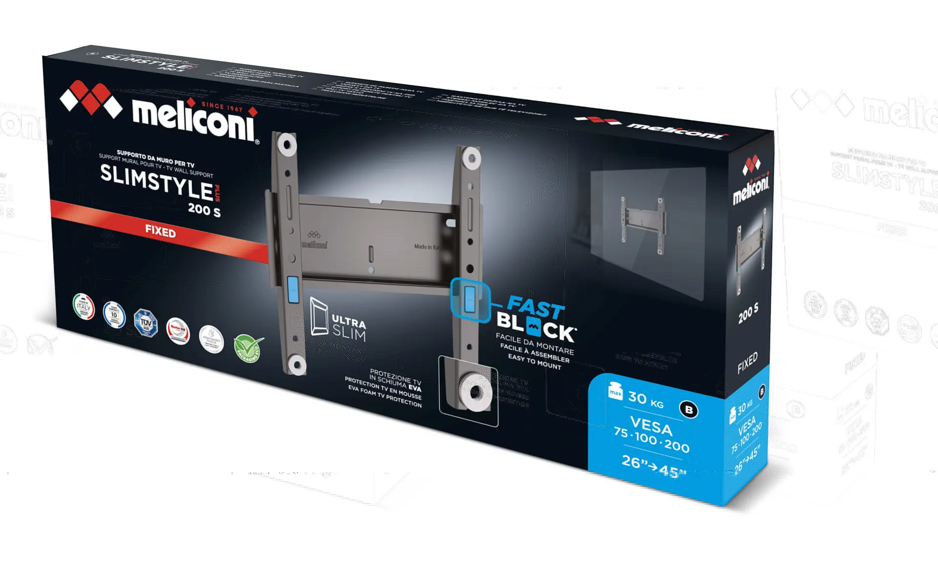 Meliconi 480986, 66 cm (26"), 114,3 cm (45"), 30 kg, 50 x 75 mm, 100 x 200 mm, Nero