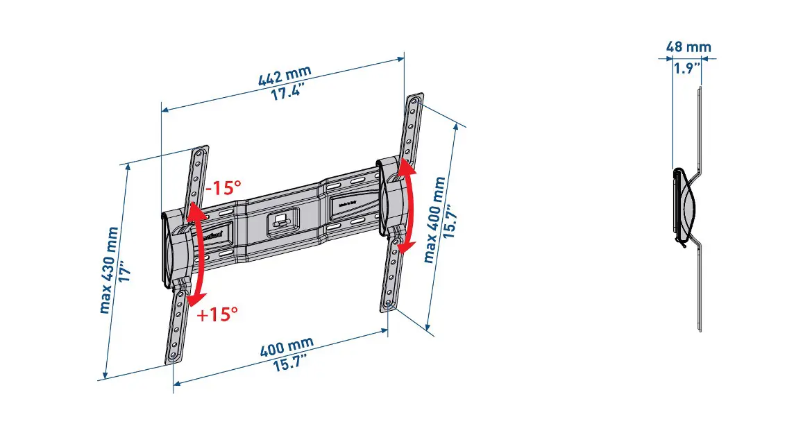 Meliconi CME ET400, 139,7 cm (55"), 200 x 200 mm, 400 x 400 mm, -15 - 15°, Acciaio, Nero