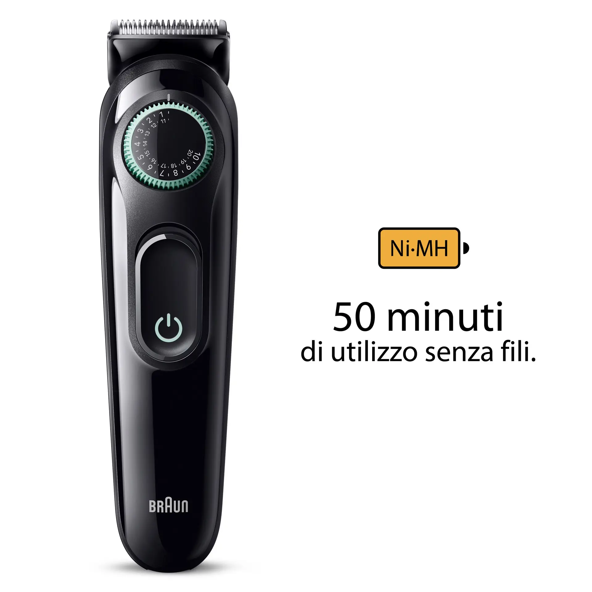 Braun BeardTrimmer 3 BT3411 Regolabarba Uomo, Lavabile, Batteria, Nero, Verde