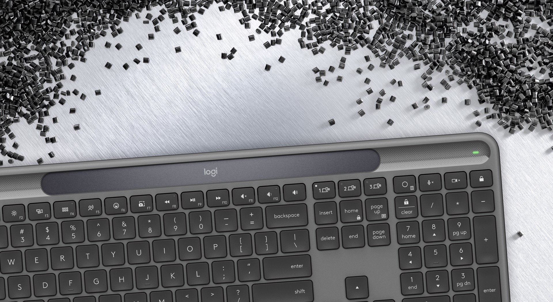Progettata con tasti che supportano fino a 10 milioni di pressioni e garantiscono una digitazione senza interruzioni: Signature Slim Solar+ è realizzata con plastica riciclata e l'alluminio della piastra interna è prodotto con energia rinnovabile anziché combustibili fossili.