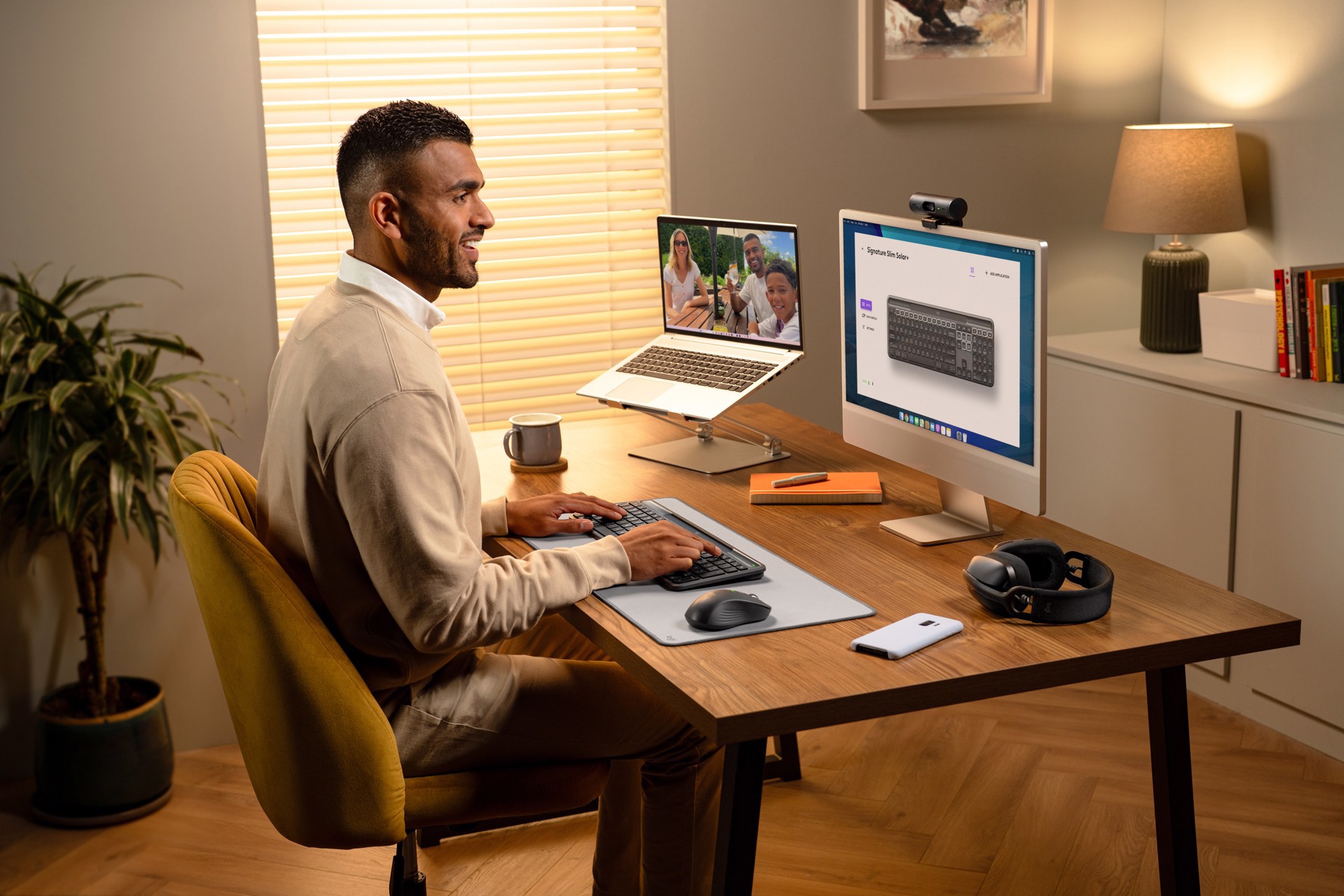Unisci lavoro e vita personale per fare più di quanto avresti mai immaginato, grazie alla tastiera wireless Signature Slim Solar+ e all’app Logi Options+.