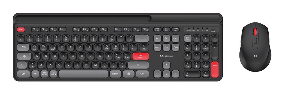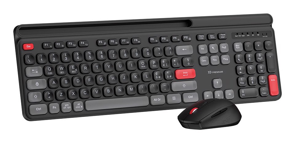 XD Enjoy XDYM2530 tastiera Mouse incluso USB + Bluetooth QWERTY Italiano Nero, Grigio, Rosso