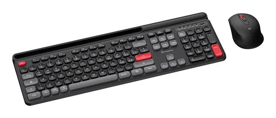 XD Enjoy XDYM2530, Full-size (100%), Wireless, USB + Bluetooth, QWERTY, Nero, Grigio, Rosso, Mouse incluso