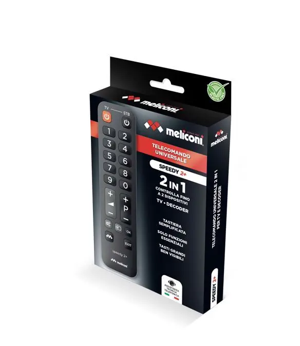 Telecomando universale semplificato 2 in 1, ideale per comandare le funzioni essenziali di 1 TV e 1 Decoder esterno (Digitale Terrestre o satellitare). Può comandare anche il solo TV. ? Il telecomando ha una banca dati interna tra le più complete del...