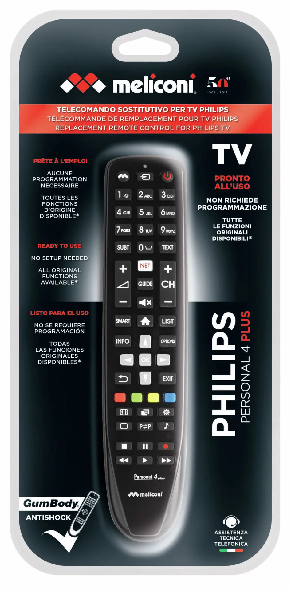 Meliconi Gumbody Personal 4 plus telecomando IR Wireless TV Pulsanti