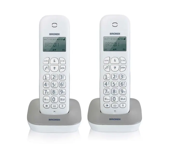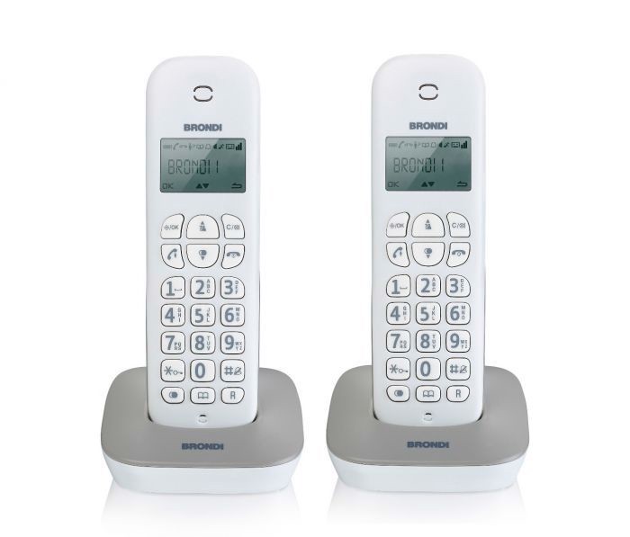 Brondi Gala Twin, Telefono DECT, Cornetta wireless, 20 voci, Identificatore di chiamata, Grigio, Bianco