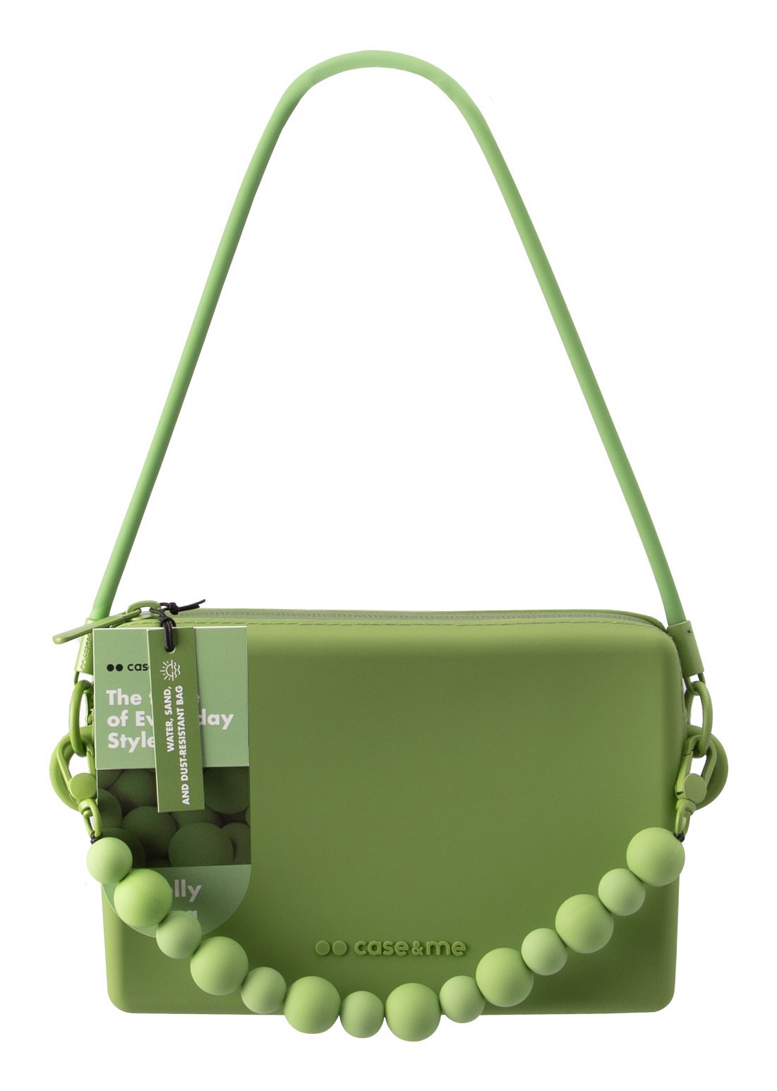 Nulla è lasciato al caso con Jelly Bag di case&me. Il logo in rilievo, la chiusura a zip resistente all’acqua e il laccio da polso di perle in silicone la rendono un accessorio unico e di tendenza, una vera dichiarazione di stile. Oltre ad aggiungere comodità alla borsa, il laccio è anche utilizzabile come laccio da polso per la borsa o per smartphone tramite patch universale case&me.