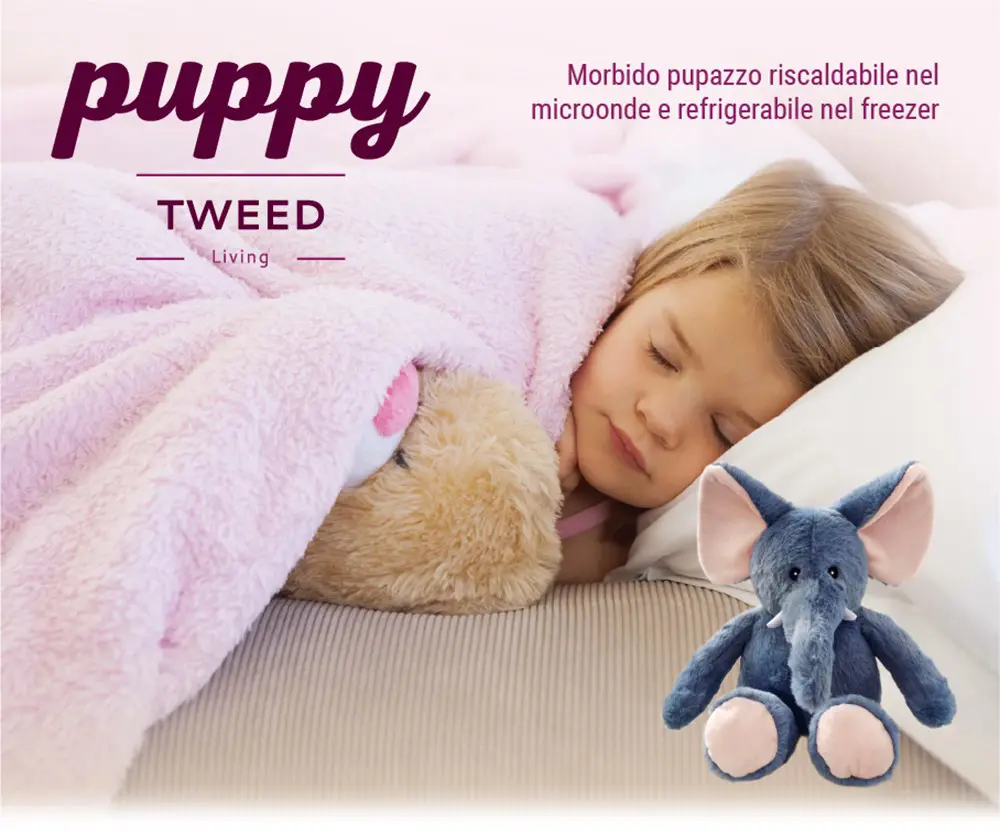 TWEED PUPPY Morbido pupazzo riscaldabile nel microonde e refrigerabile nel freezer