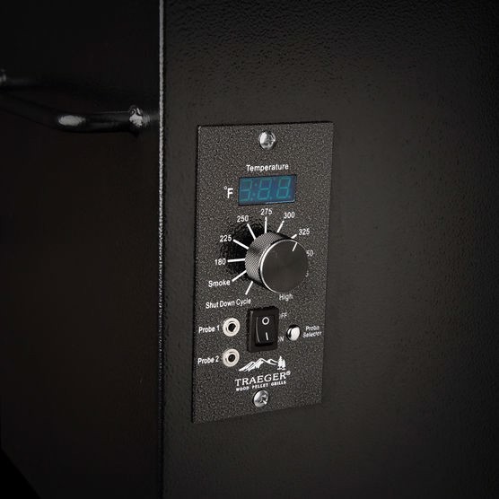 Traeger Pro Series 22. Tipo: Grill, Fonte di calore: Pellet, Numero totale di fuochi: 2 Fornello(i). Fattore di forma: Barile, Tipo di superficie superiore: Griglia, Colore del prodotto: Nero, Blu. Numero di ruote: 2 ruota(e), Numero di gambe: 2 gamba/gambe, Tipo di controllo: Pulsanti, Manopola