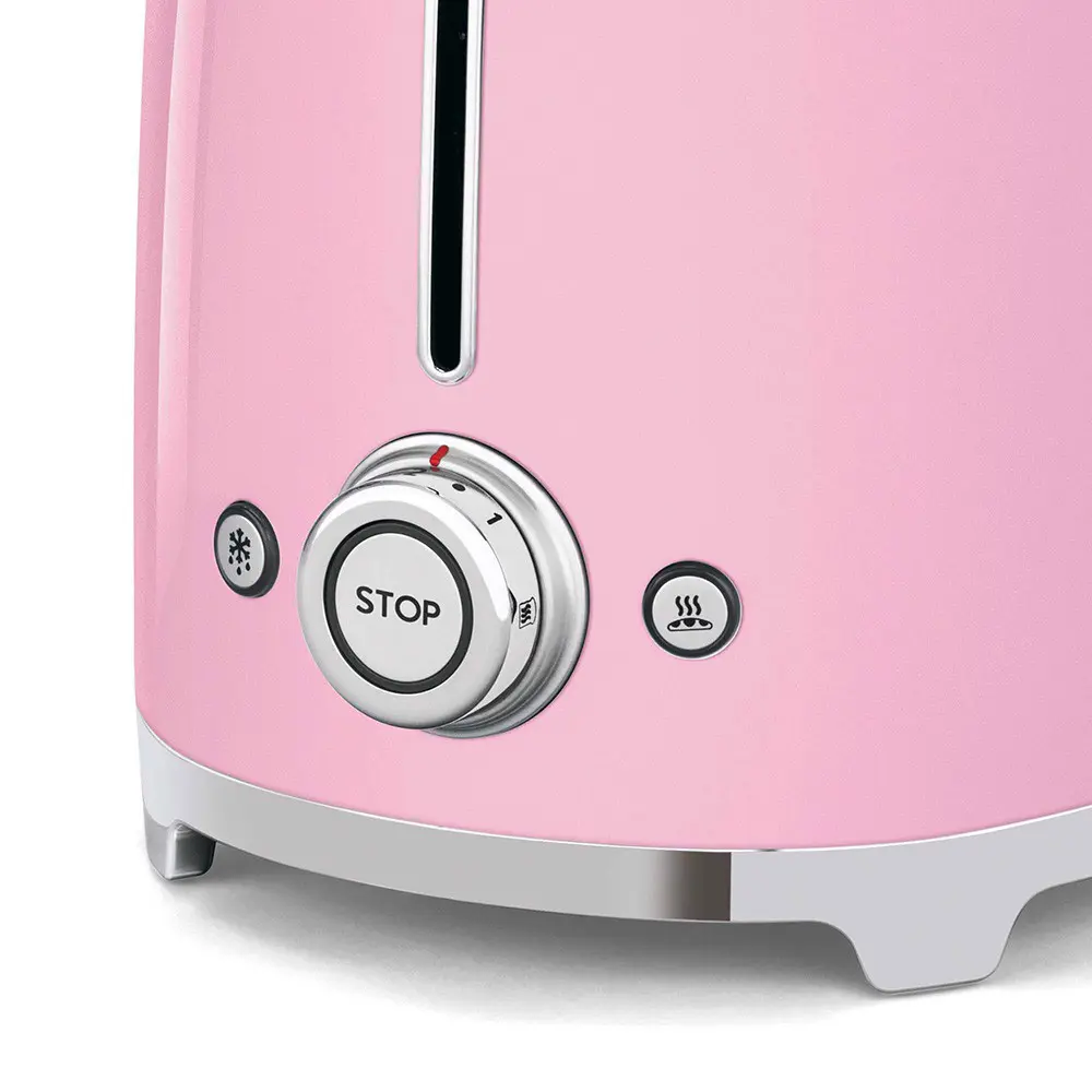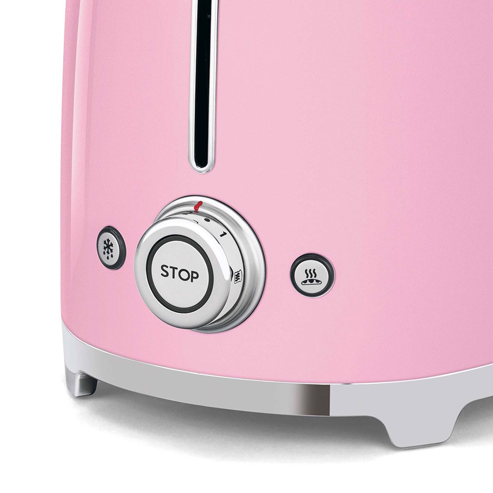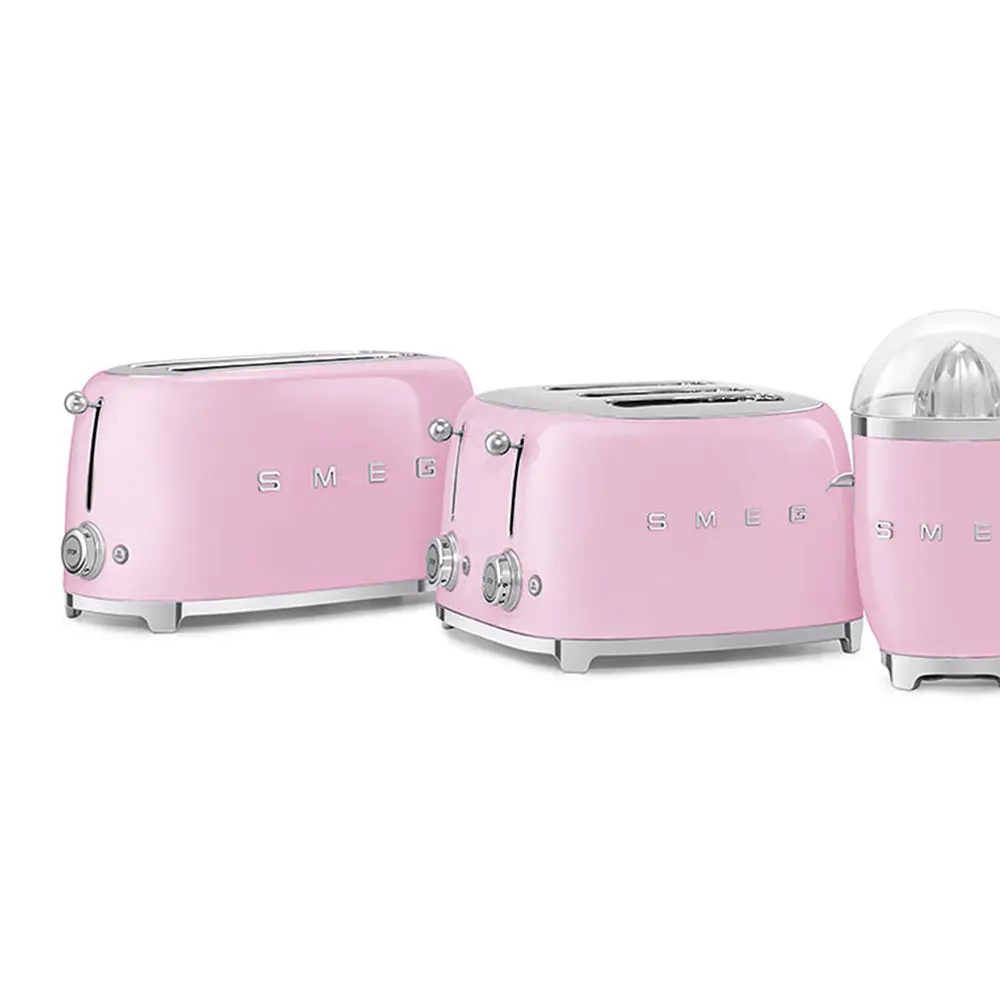 Smeg TSF02PKEU, 4 fetta/e, Rosa, Plastica, Acciaio inossidabile, Pulsanti, Livello, Manopola, Cina, 1500 W