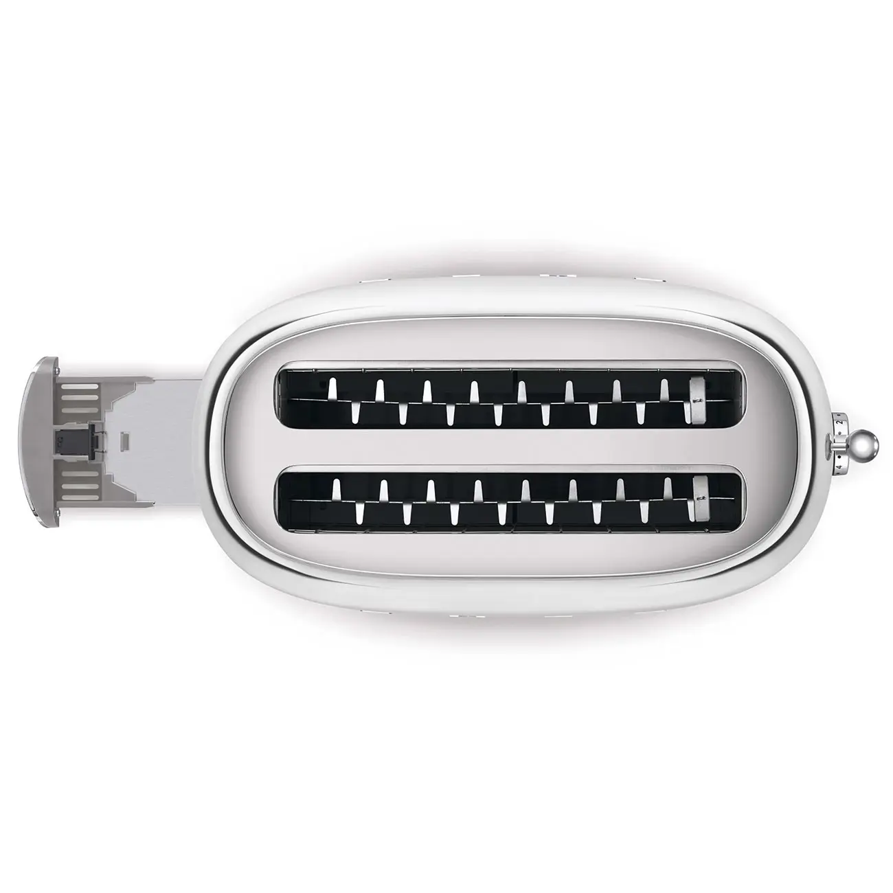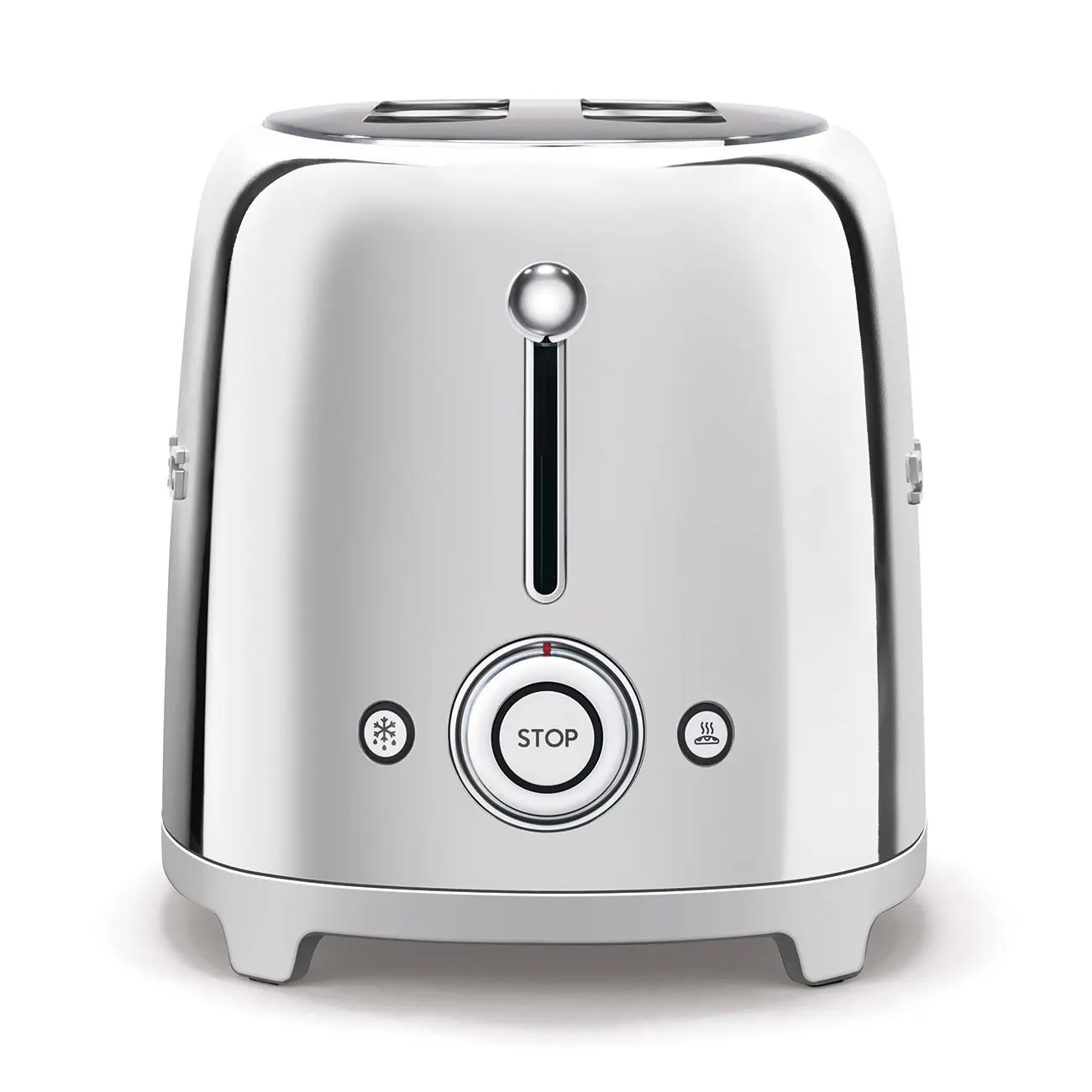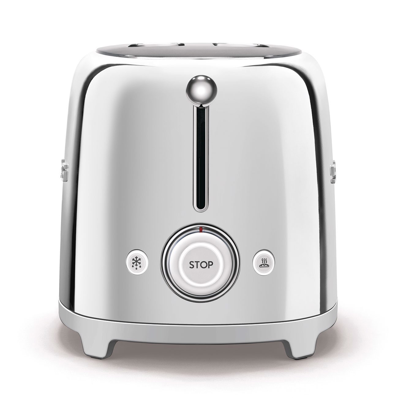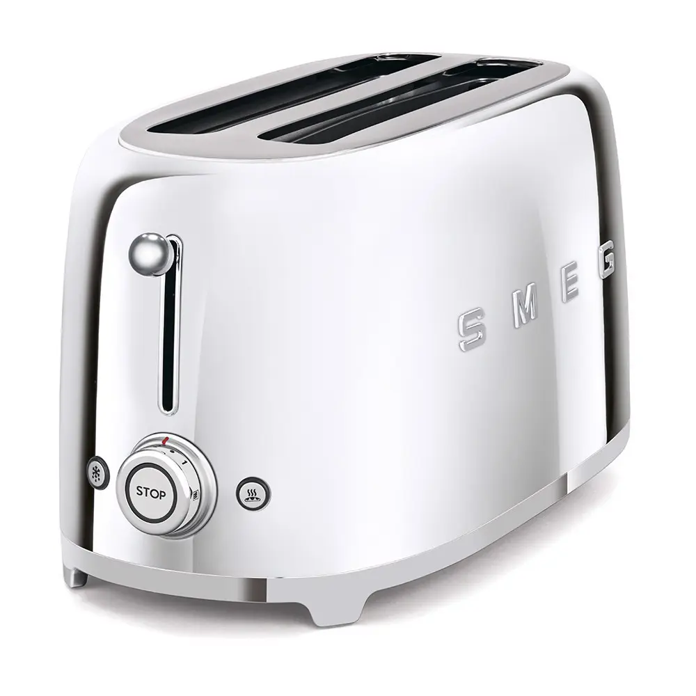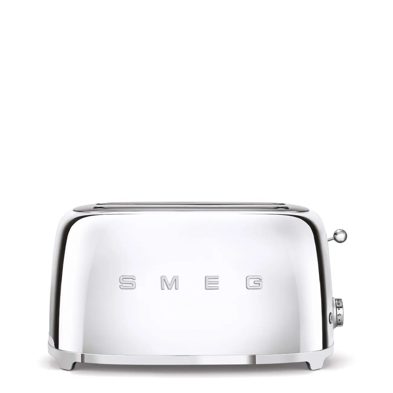 Il tostapane Smeg a 4 scomparti può essere usato con fette di pane di diverse dimensioni ed è possibile scegliere fra sei livelli di doratura, tostare un solo lato ma anche semplicemente scaldare o scongelare.