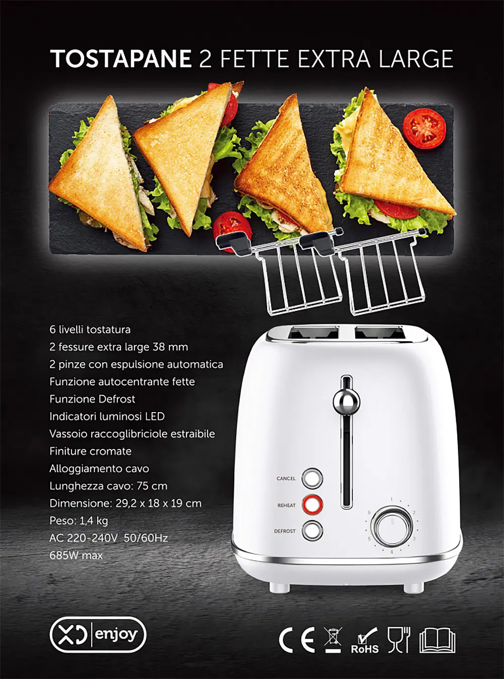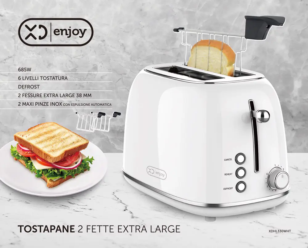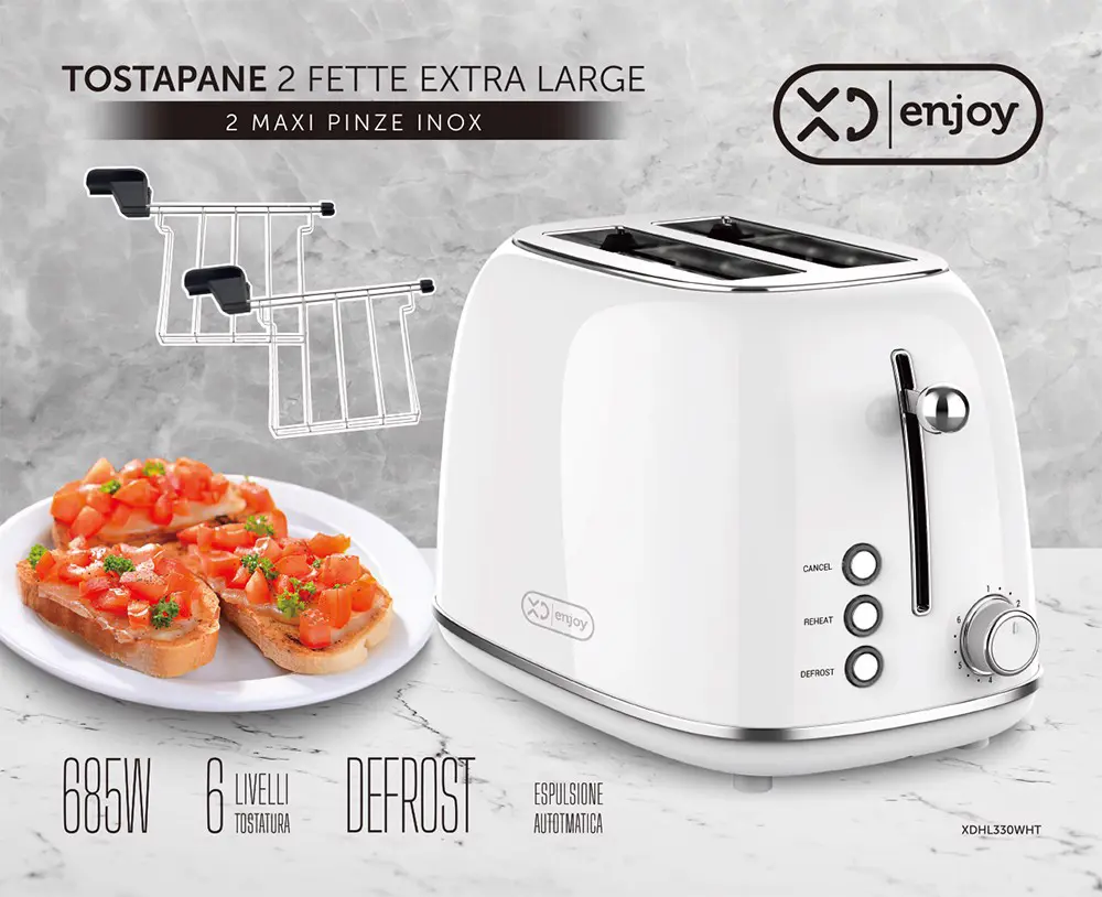 XD Enjoy XDHL330WHT, 2 fetta/e, Argento, Bianco, Cromo, Livello, Manopola, 685 W, 220 V