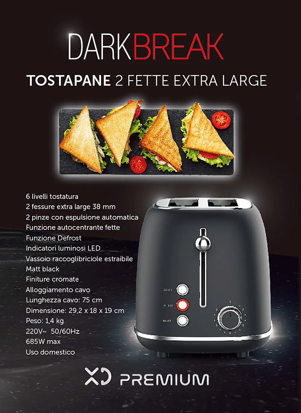 XD Premium XDHL330DRK tostapane 2 fetta/e 685 W Nero