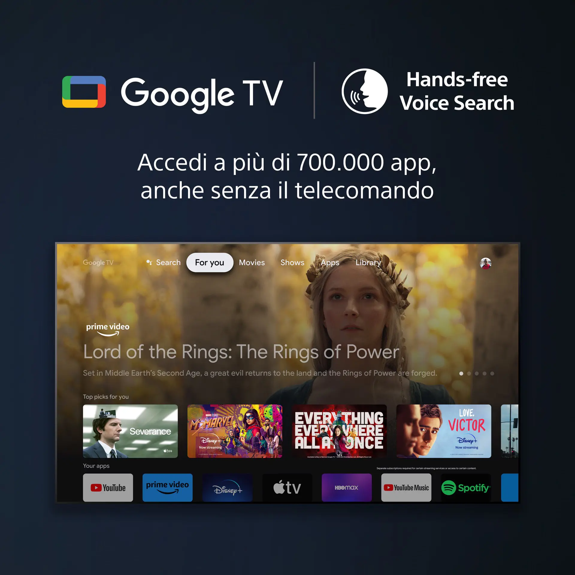 | Applicazioni Video | 4oD, All 4, Amazon Prime Video, Apple TV, BBC iPlayer, DAZN, Disney+, Freeview Play, Google TV, ITV Hub, My5, Rakuten TV, Vimeo, YouTube |