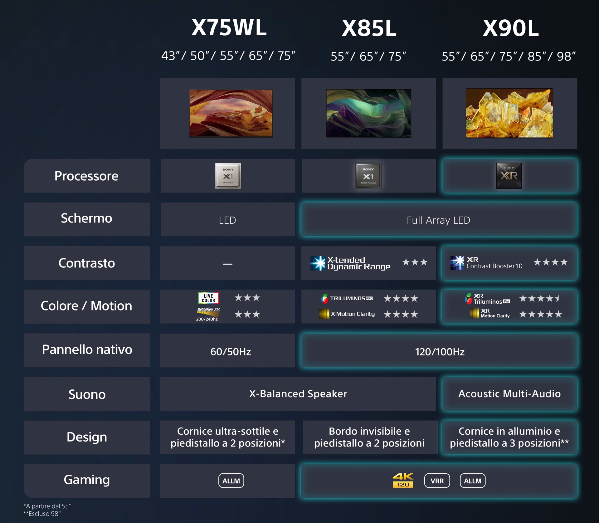 | Tecnologia di elaborazione immagine | Sony Dynamic Contrast Enhancer, Sony Live Colour, Sony XR Contrast Booster, Sony XR Smoothing, Sony XR Triluminos Pro |
