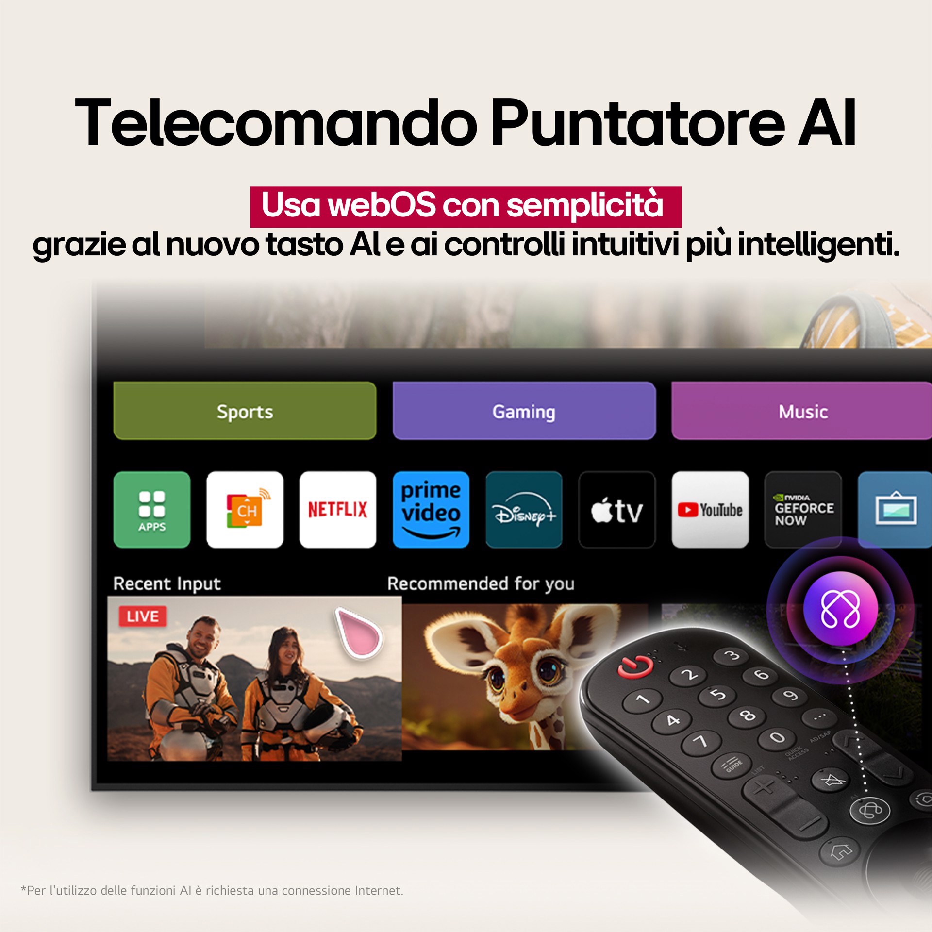 | Tecnologie LG (AV/TV) | AI Acoustic Tuning, AI Sound Pro, AI Super Upscaling 4K, Bluetooth Surround Ready, Dynamic Tone Mapping Pro, LG Sound Sync, ThinQ™, WOW Orchestra, WebOS Smart TV |
