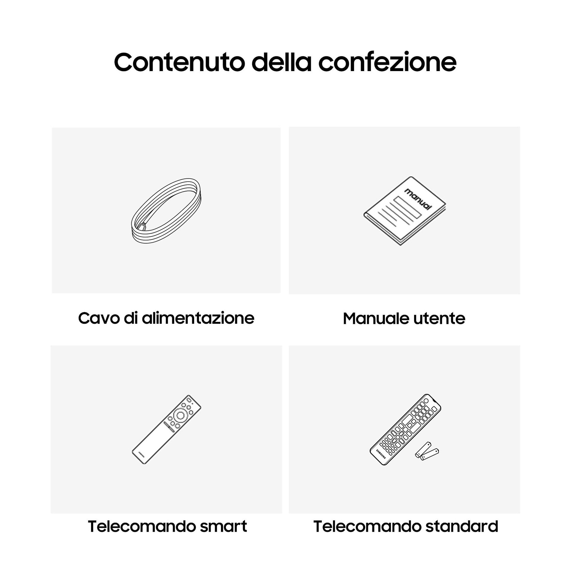 | Tecnologie Samsung (AV/TV) | Contrast Enhancer, Hub di gioco, Hyper Real Engine, Q-Symphony, Samsung TV Plus |