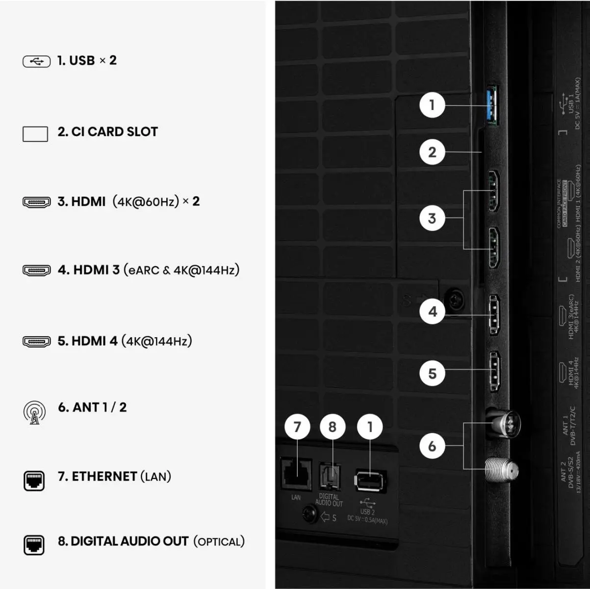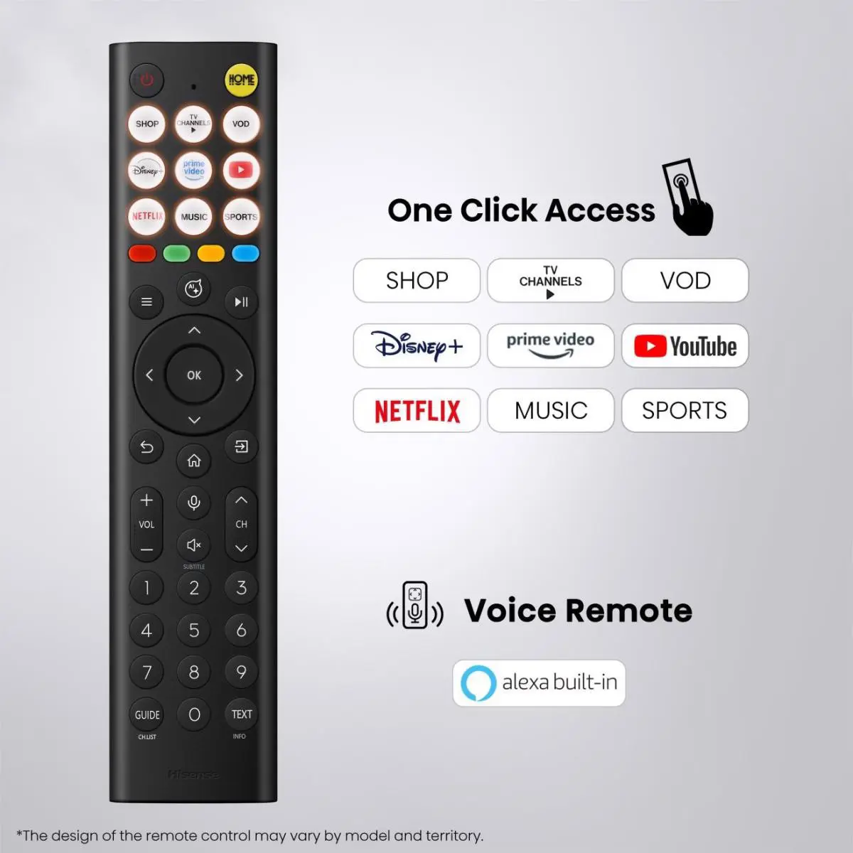 | Tecnologie Hisense (AV/TV) | Dolby Vision™ IQ, HDR10+, MEMC (Motion Estimation Motion Compensation), VIDAA Smart TV, Game Bar, Adaptive Light Sensor |