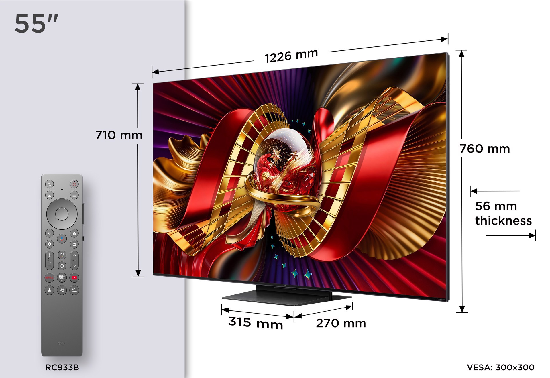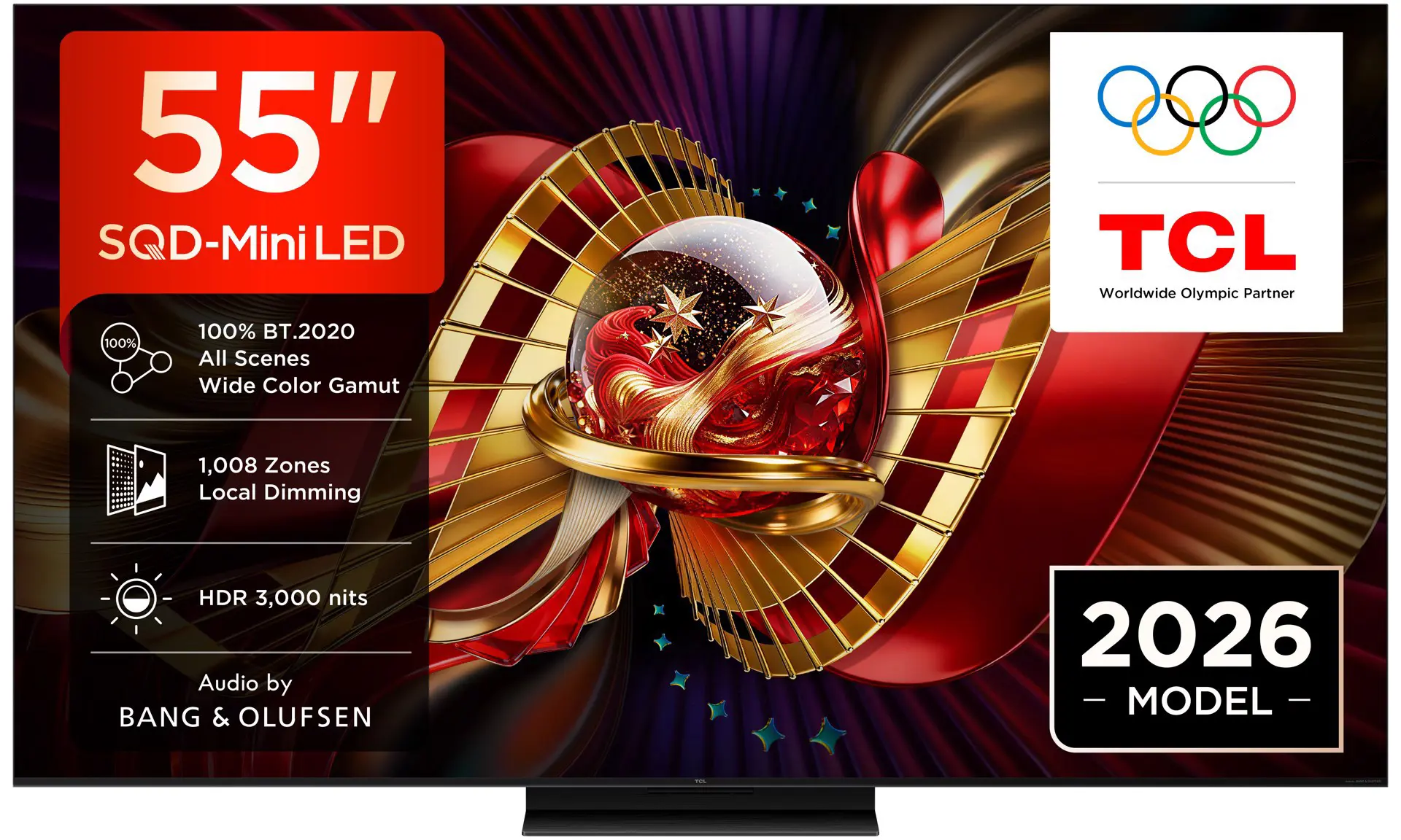 TCL C8L TV 55C8L SQD Mini LED da 55", 4K HDR, 3000 nit, 1.008 zone di dimming, Google TV, 144Hz, Dolby Vision & Atmos, Audio Bang & Olufsen