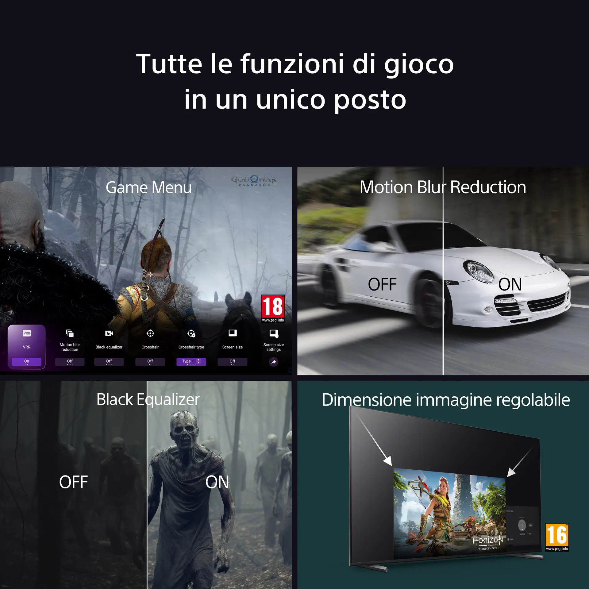 I giocatori potranno godere di un'esperienza di gioco fluida e reattiva, con 4K/120 fps, VRR e ALLM in HDMI 2.1(11), il nostro menu di gioco ad accesso rapido Game Menu 2, le funzionalità Perfect for PS5®(12) e PS Remote Play(13).