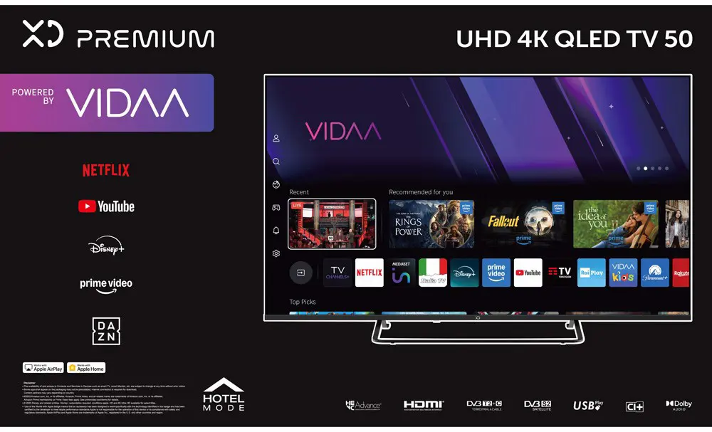 Youtube, VIDAA Free, NetfUx, App Store, Prime Video"