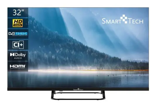 Smart-Tech 32HN01V. Dimensioni diagonale schermo: 81,3 cm (32"), Risoluzione del display: 1366 x 768 Pixel, Tipologia HD: HD, Tecnologia display: LED, Forma dello schermo: Piatto, Tipo di retroilluminazione LED: Direct-LED. TV. Luminosità schermo: 180 cd/m², Tempo di risposta: 8,5 ms, Rapporto di contrasto: 3000:1, Rapporto d'aspetto nativo: 16:9. Formato del segnale digitale: DVB-C, DVB-S, DVB-S2, DVB-T, DVB-T2. Colore del prodotto: Nero