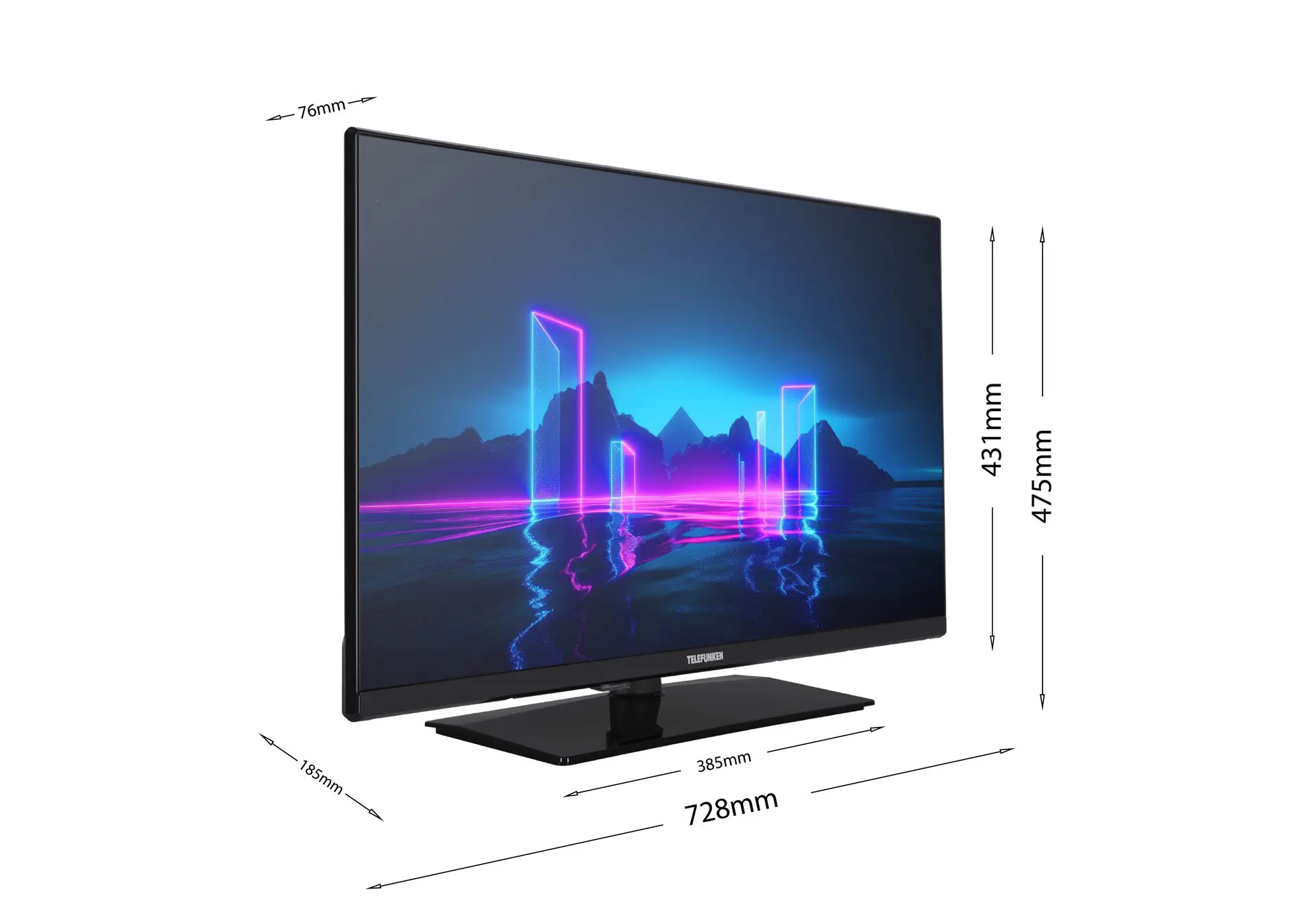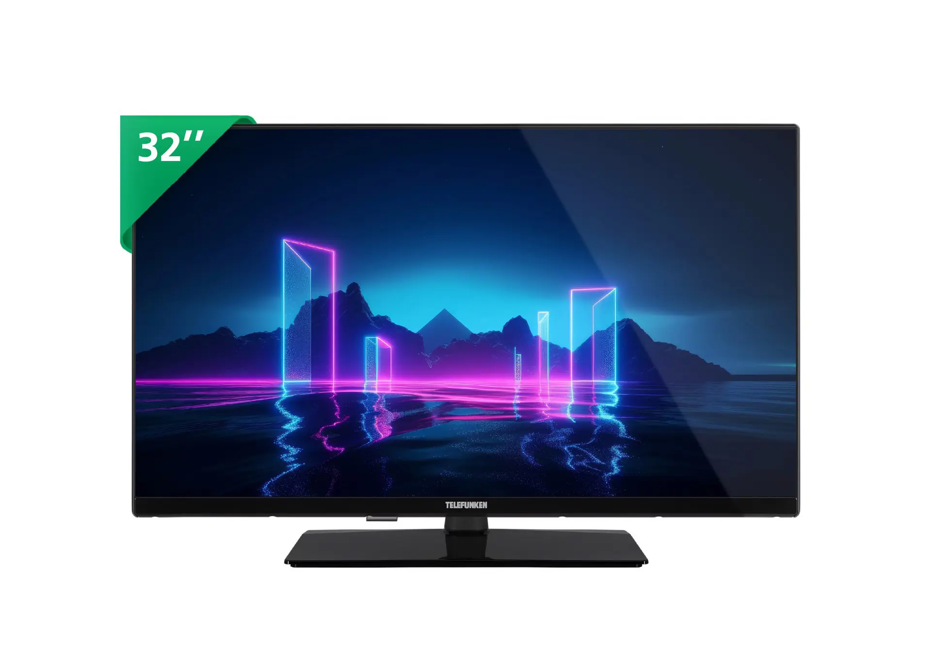 Telefunken TE32750B45V2D. Dimensioni diagonale schermo: 81,3 cm (32"), Risoluzione del display: 1366 x 768 Pixel, Tipologia HD: HD, Tecnologia display: DLED, Forma dello schermo: Piatto. Smart TV. Luminosità schermo: 250 cd/m², Tempo di risposta: 8,5 ms, Rapporto di contrasto: 200:1. Formato del segnale digitale: DVB-C, DVB-S2, DVB-T2. Wi-Fi, Collegamento ethernet LAN. Colore del prodotto: Nero