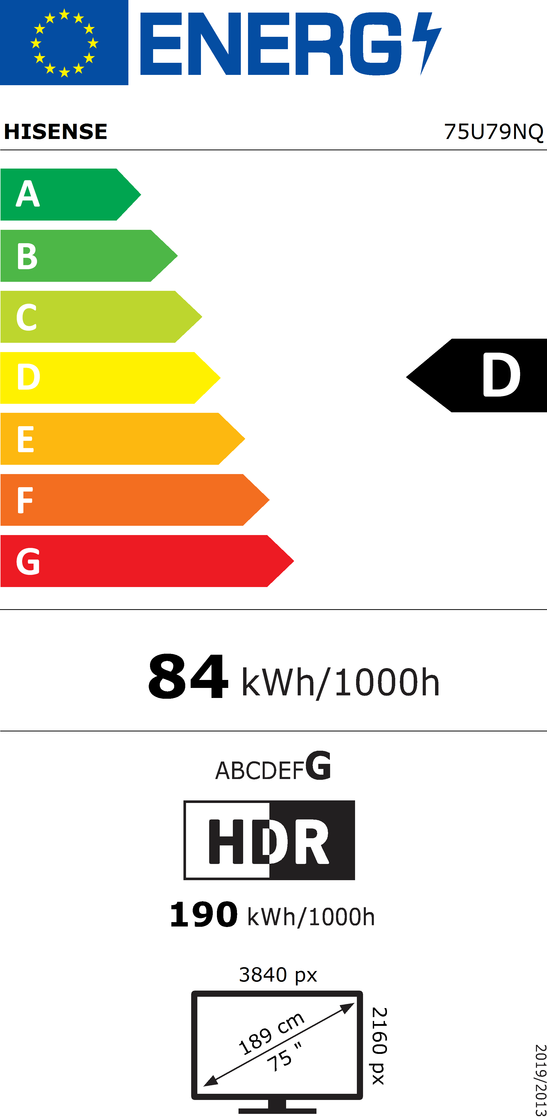 | Dimensioni diagonale schermo | 190,5 cm (75") |