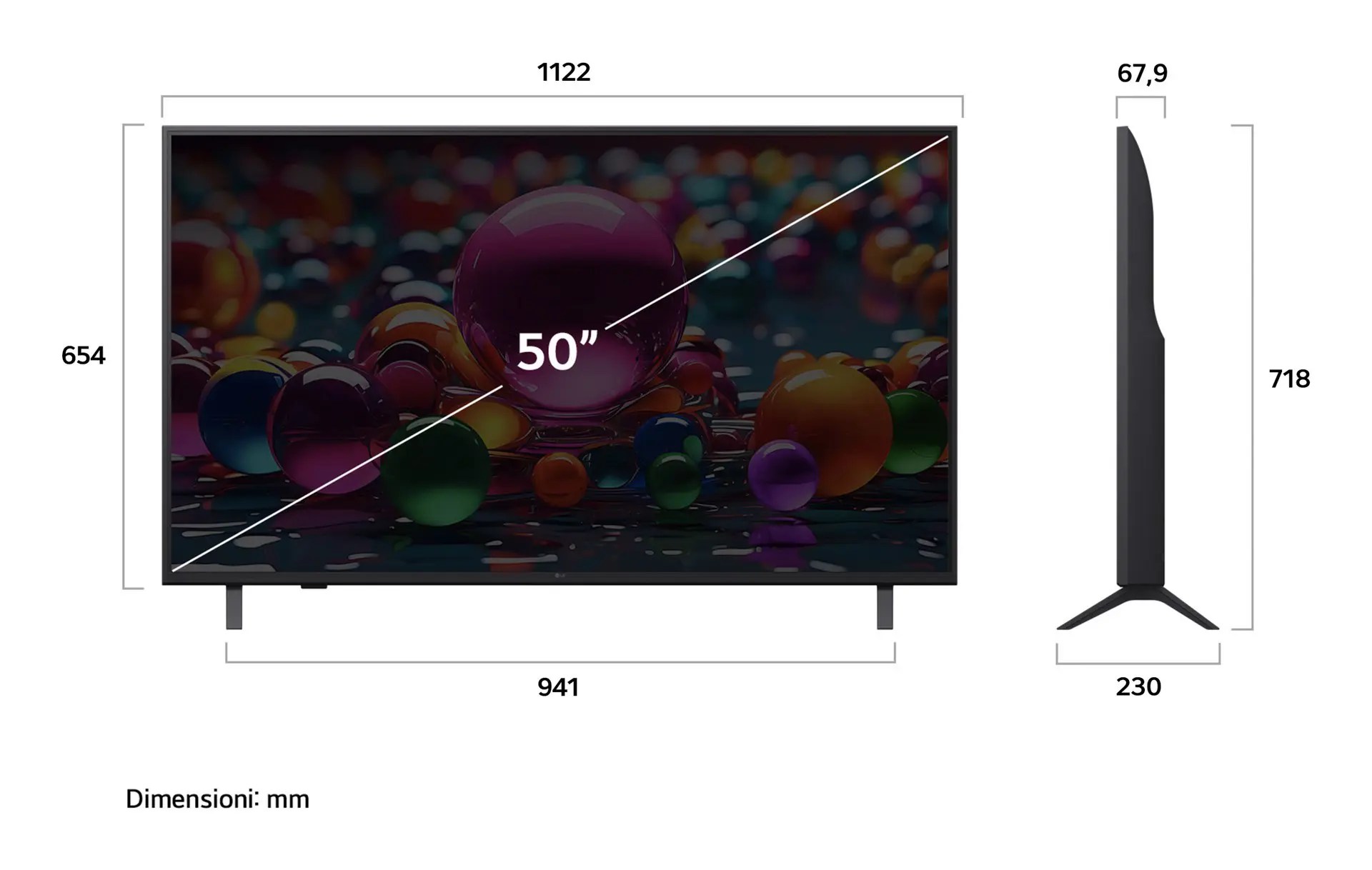 | Dimensioni diagonale schermo | 127 cm (50") |